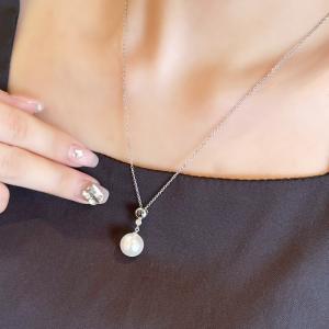 近圆天然深水珍珠豪镶满钻白玫瑰毛衣...