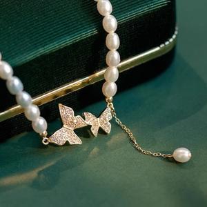 K铂金CNC彩宝钻石蜻蜓满钻锁骨链