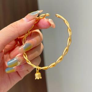 K金微雕CNC千禧龙凤推拉手镯6mm