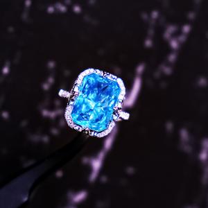 K铂金CNC彩宝钻石蓝色妖姬钻戒
