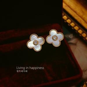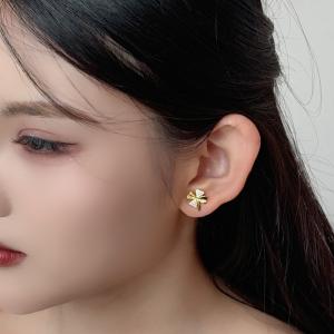 幸运花朵四叶草闪钻耳钉(对)