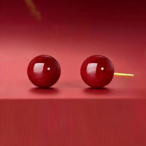 朱事顺利好运平安朱砂K金耳钉(6mm)