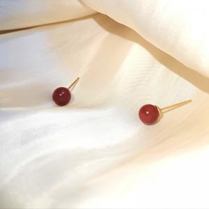 天然原矿朱砂K金耳钉