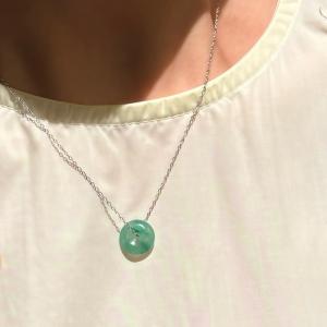 K铂金项链A级冰绿非洲翡翠转运珠吊坠...