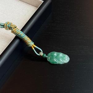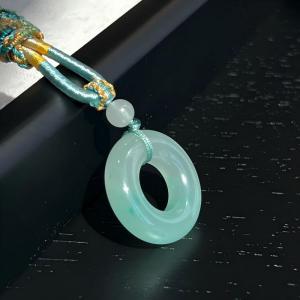 A级冰绿非洲翡翠祥云平安锁吊坠手编...