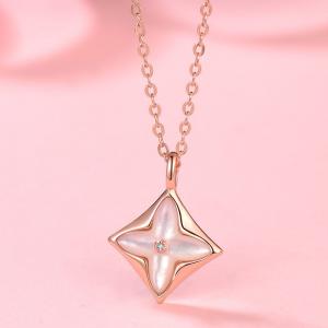 18K镶钻南非真钻四叶草方白贝