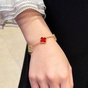 K金微雕五花五颗四叶草手链