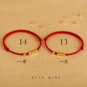 K金一生一世1314方珠款手工编绳(对)