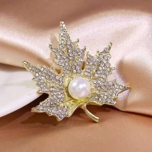 天然珍珠闪钻枫叶胸针