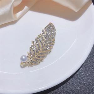 天然珍珠闪钻羽毛胸针