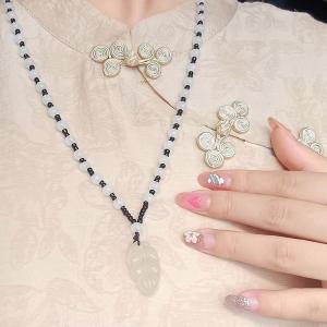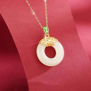古法银镶嵌和田玉-祥云平安扣