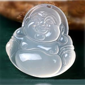 巴西高冰玉髓弥勒笑佛吊坠(附赠汉白...