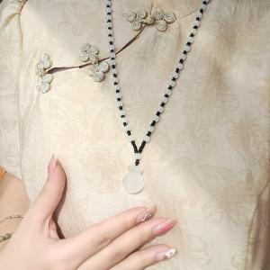 古法银镶嵌和田玉-流苏葫芦