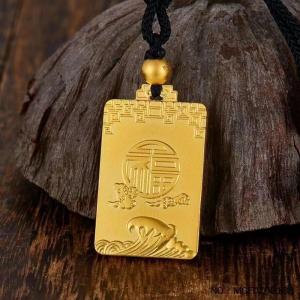 K金镂空平安无事牌吊坠(附赠K金项链...