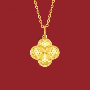 K金平安喜乐四叶草吊坠(附赠K金项链...