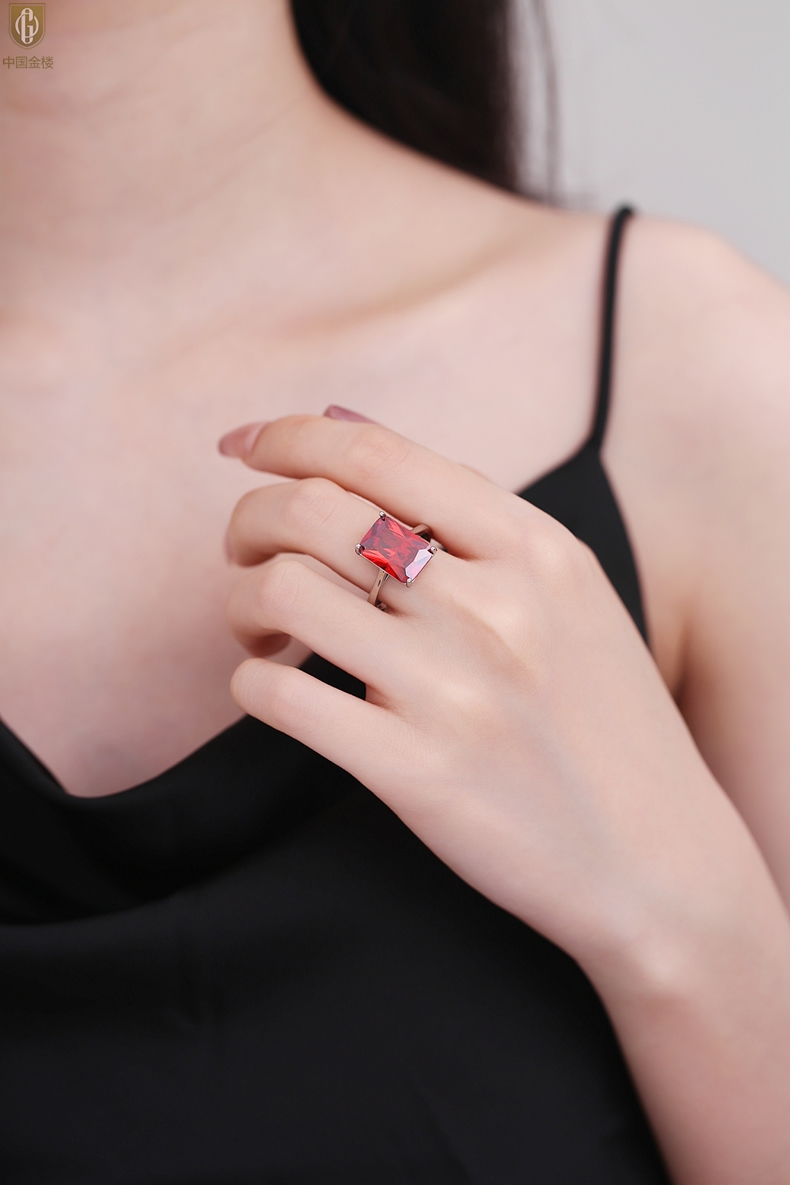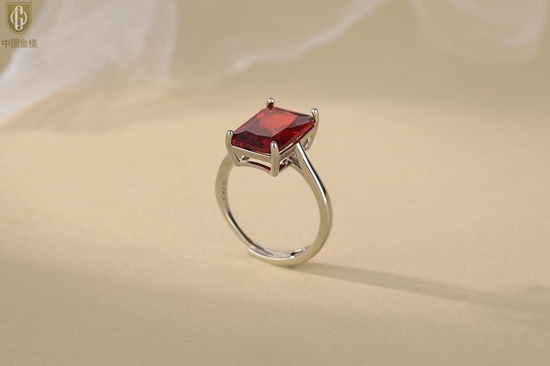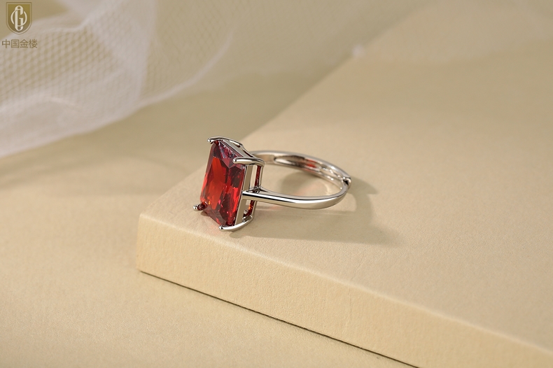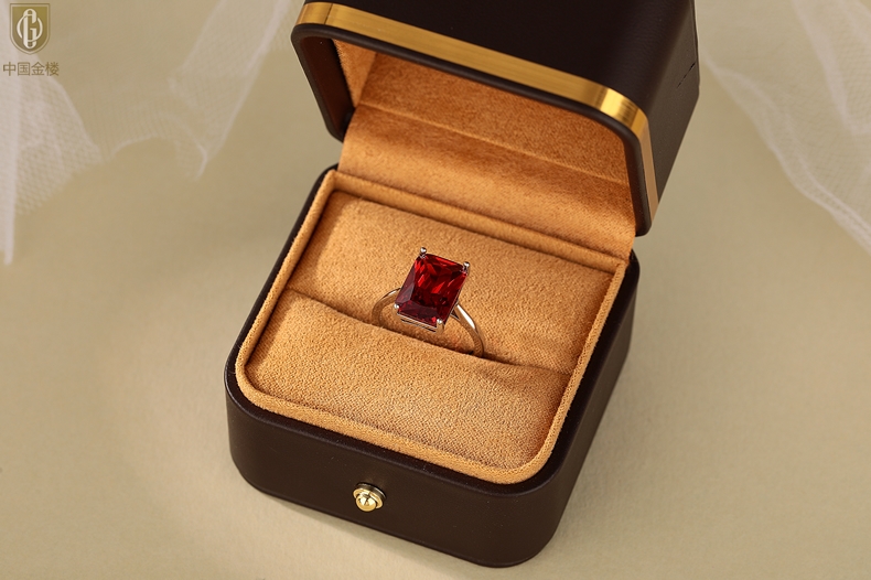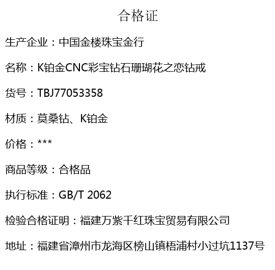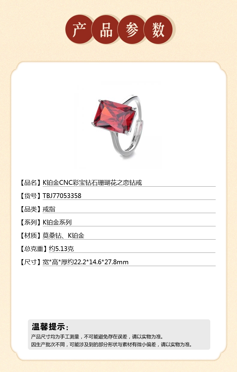 【品名】中国金楼K铂金CNC彩宝钻石珊瑚花之恋钻戒