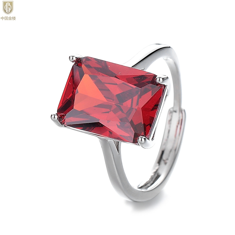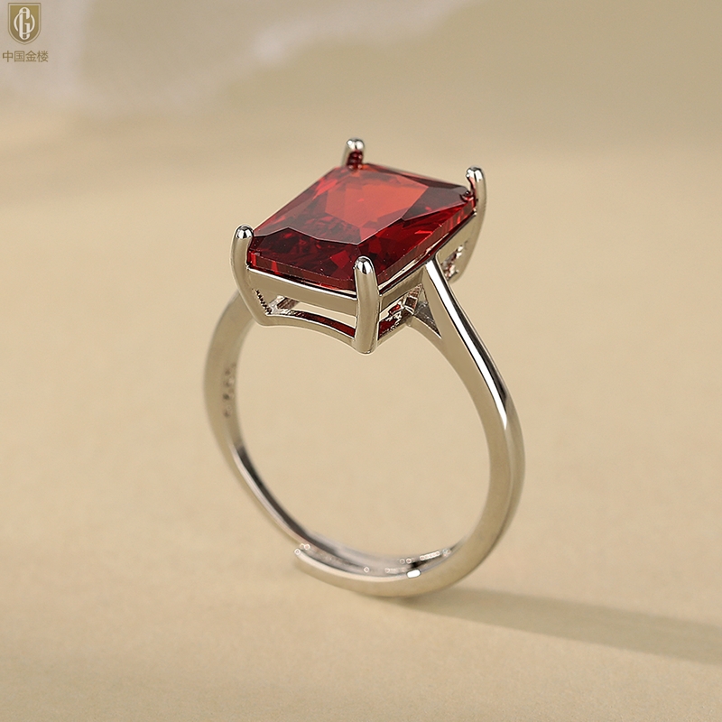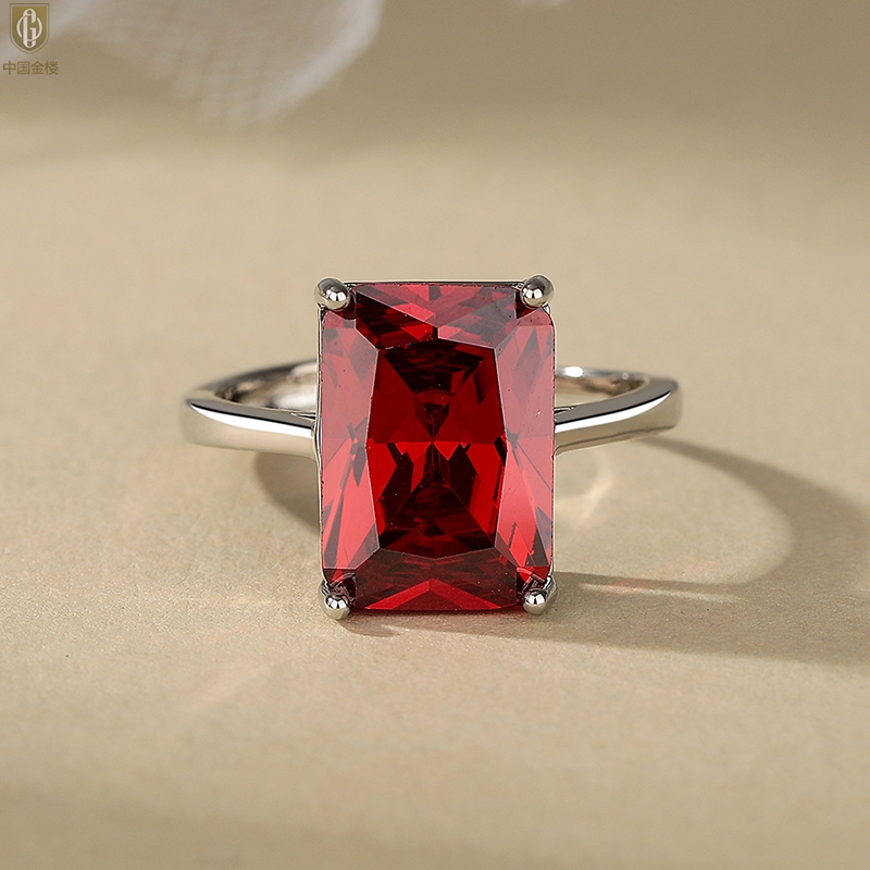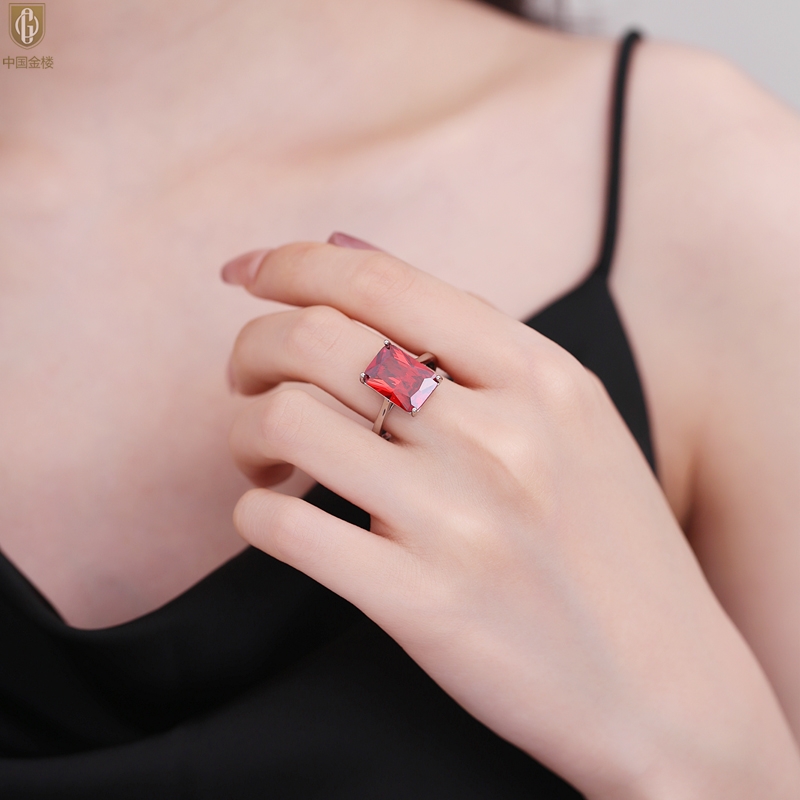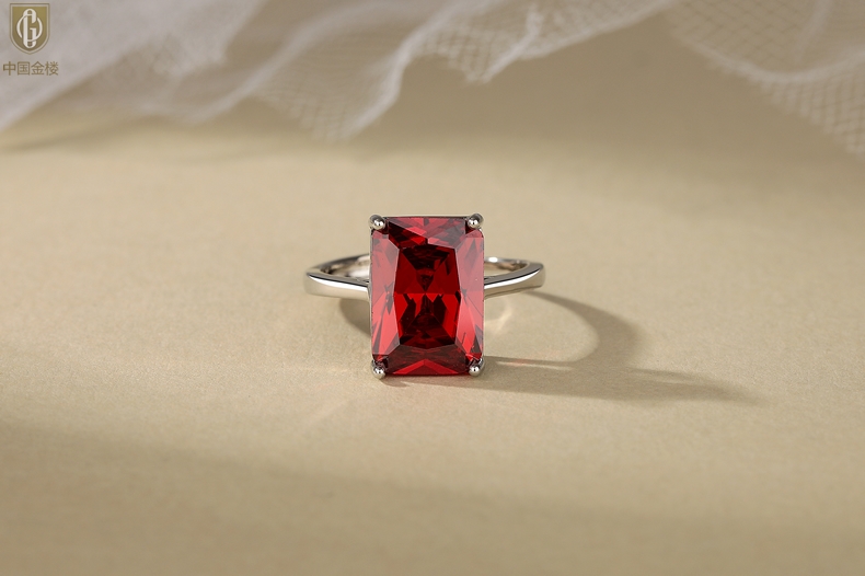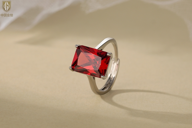 【品名】中国金楼K铂金CNC彩宝钻石珊瑚花之恋钻戒