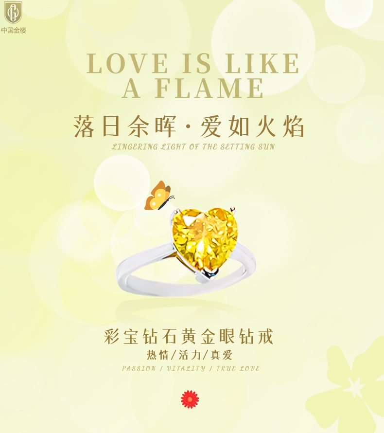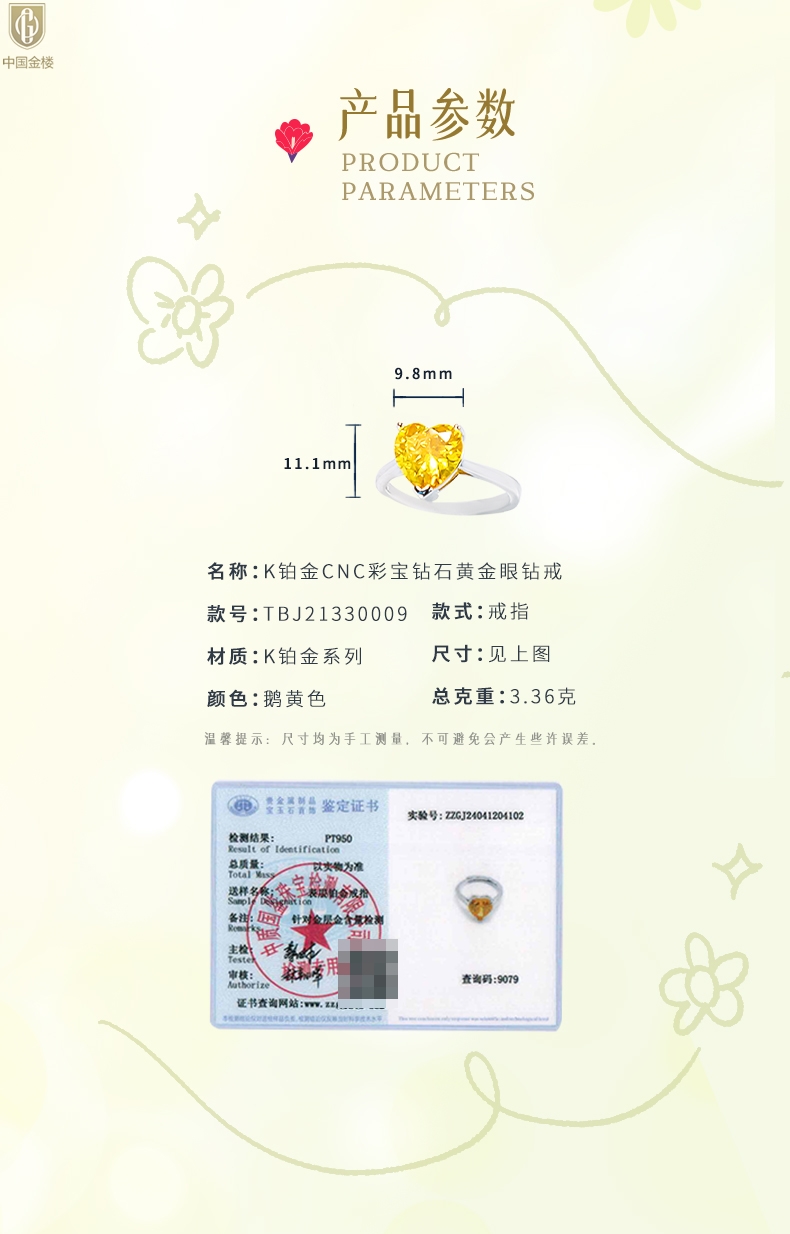 【品名】中国金楼K铂金CNC彩宝钻石黄金眼钻戒