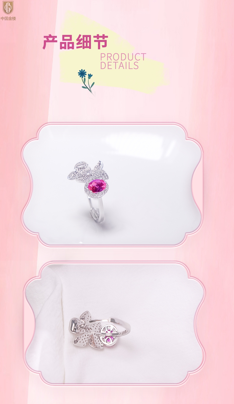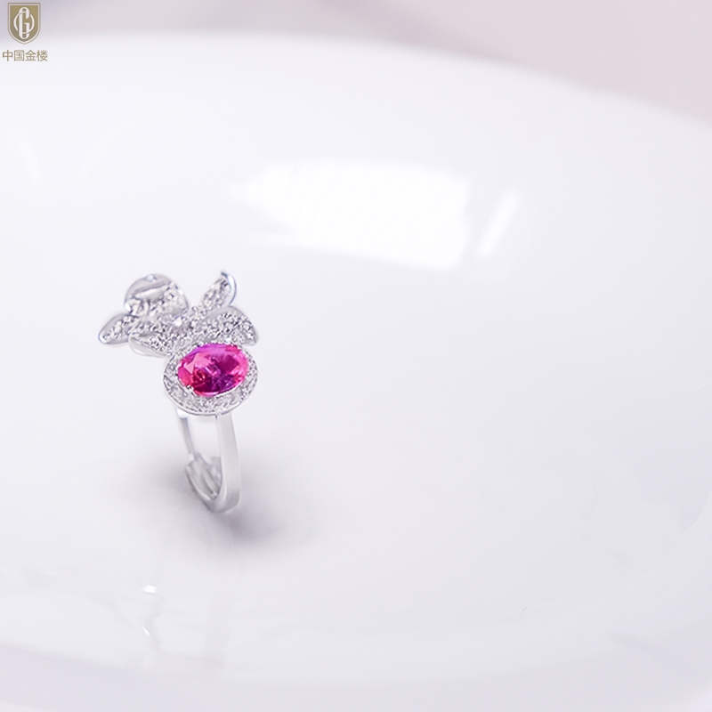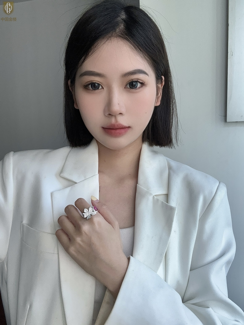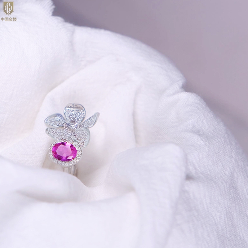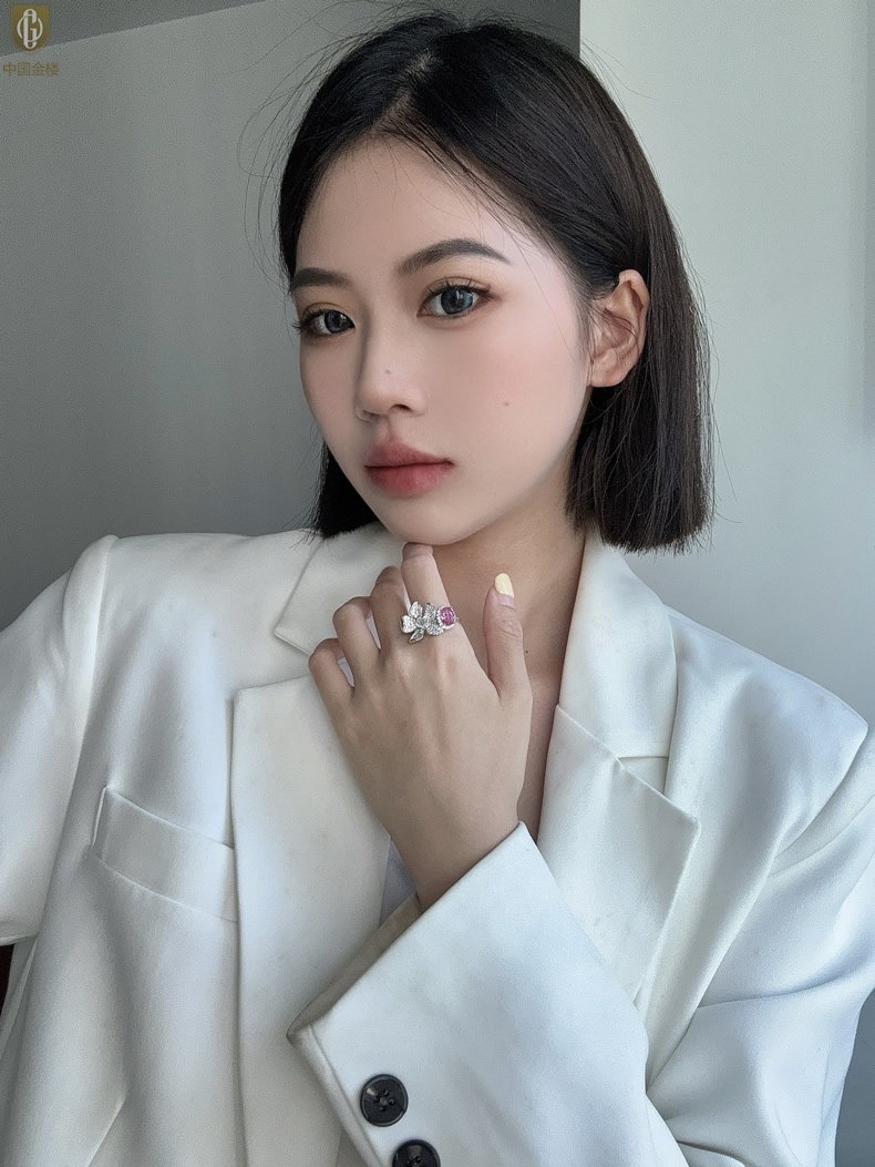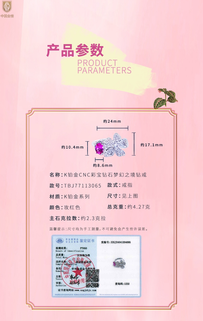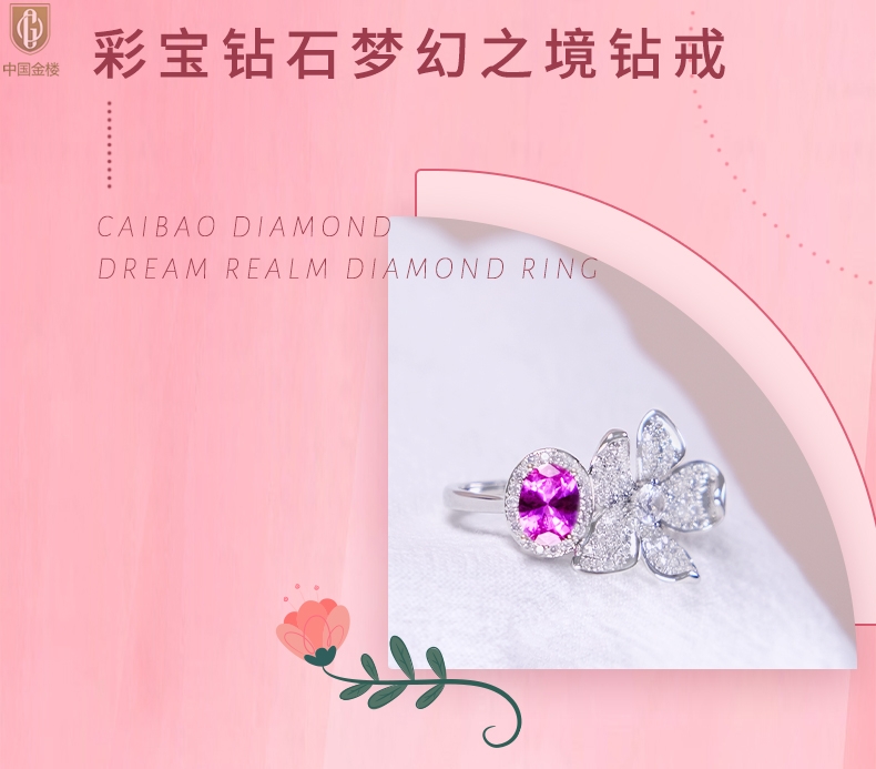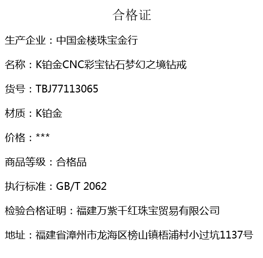 【品名】中国金楼K铂金CNC彩宝钻石梦幻之境钻戒