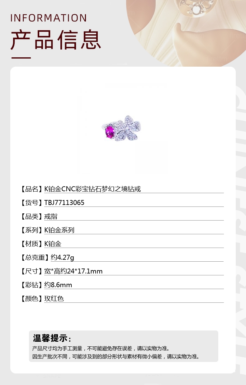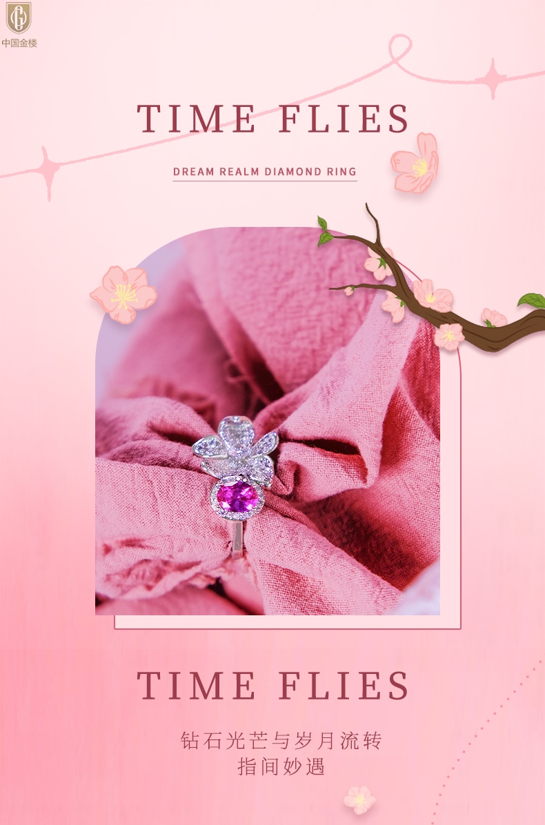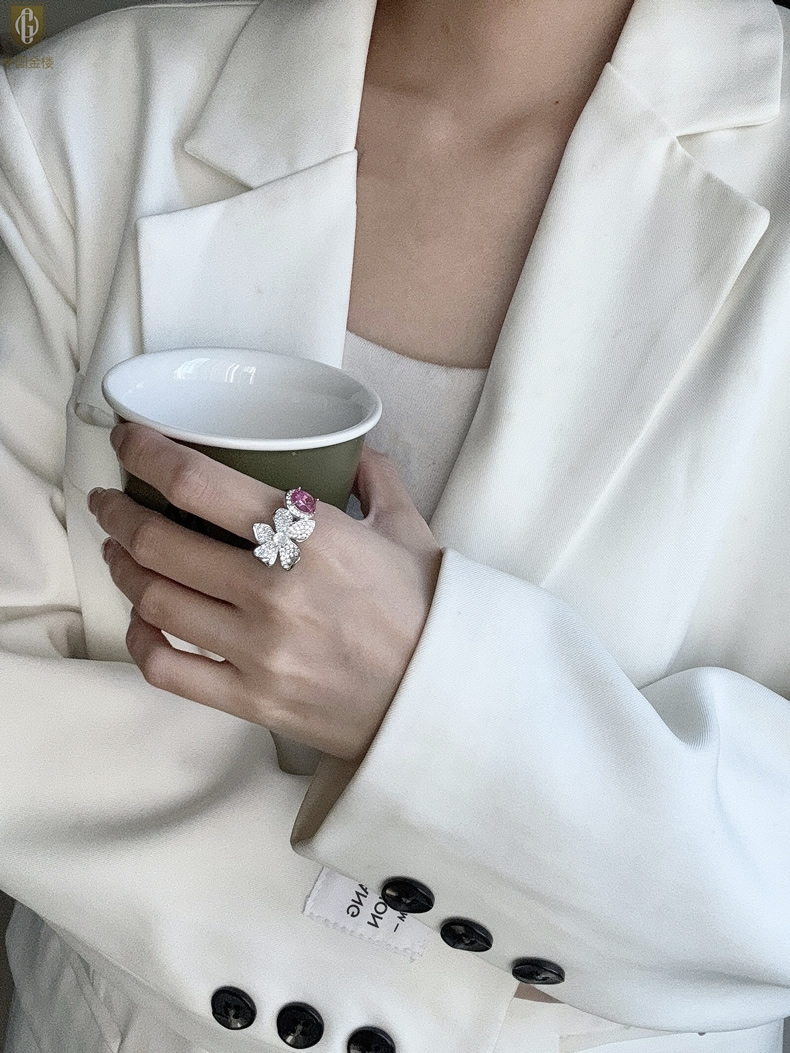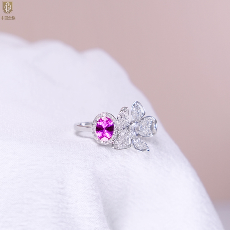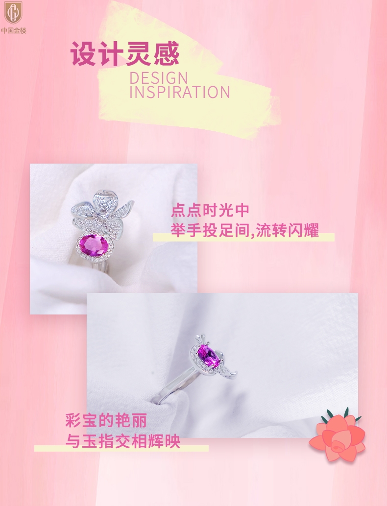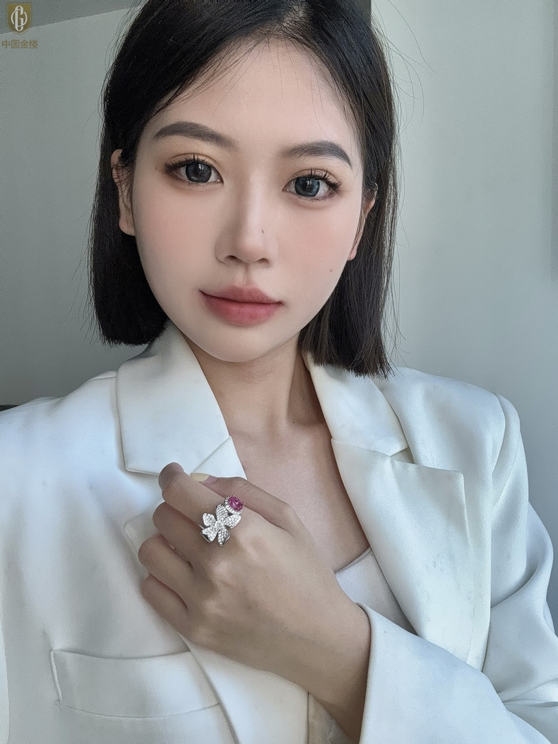 【品名】中国金楼K铂金CNC彩宝钻石梦幻之境钻戒
