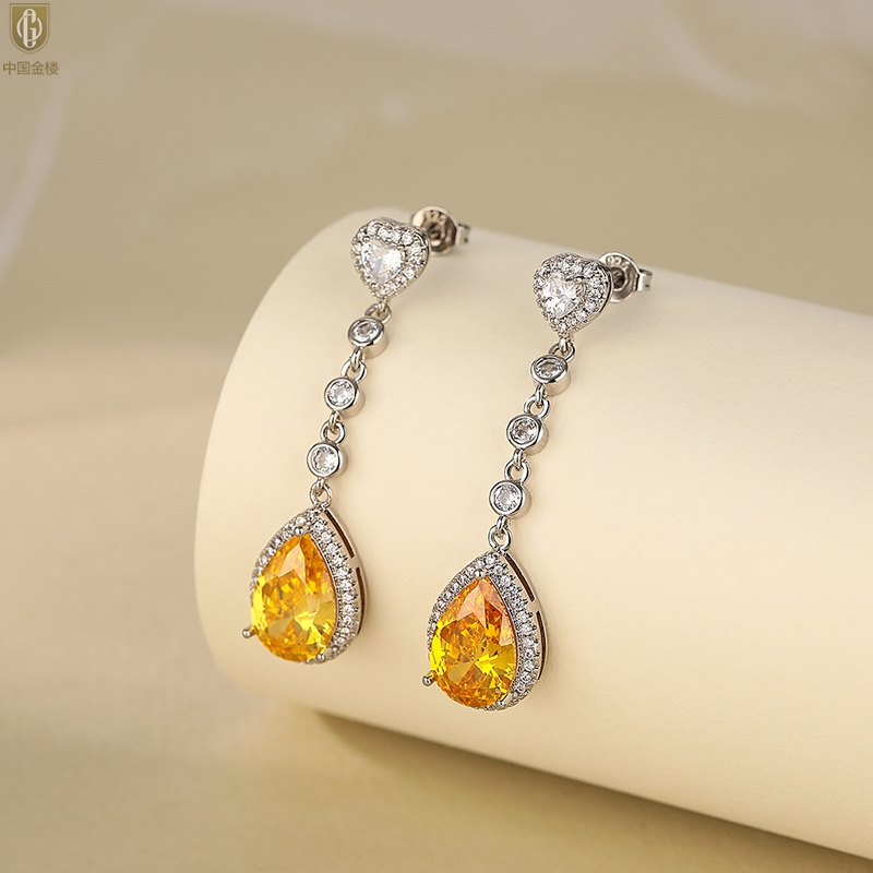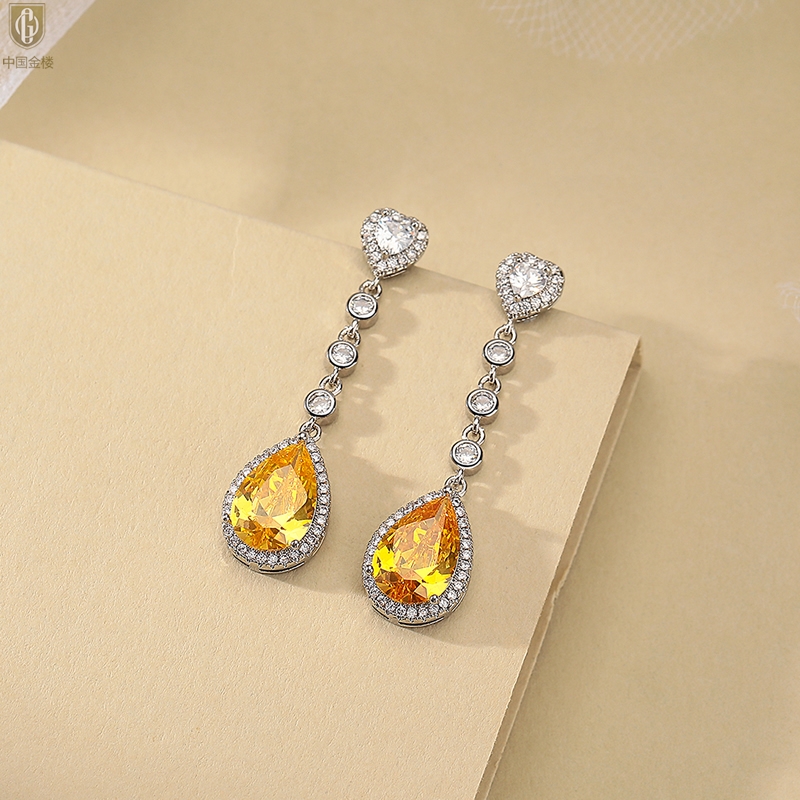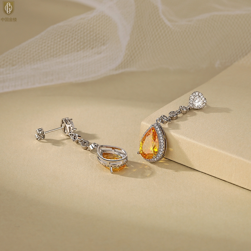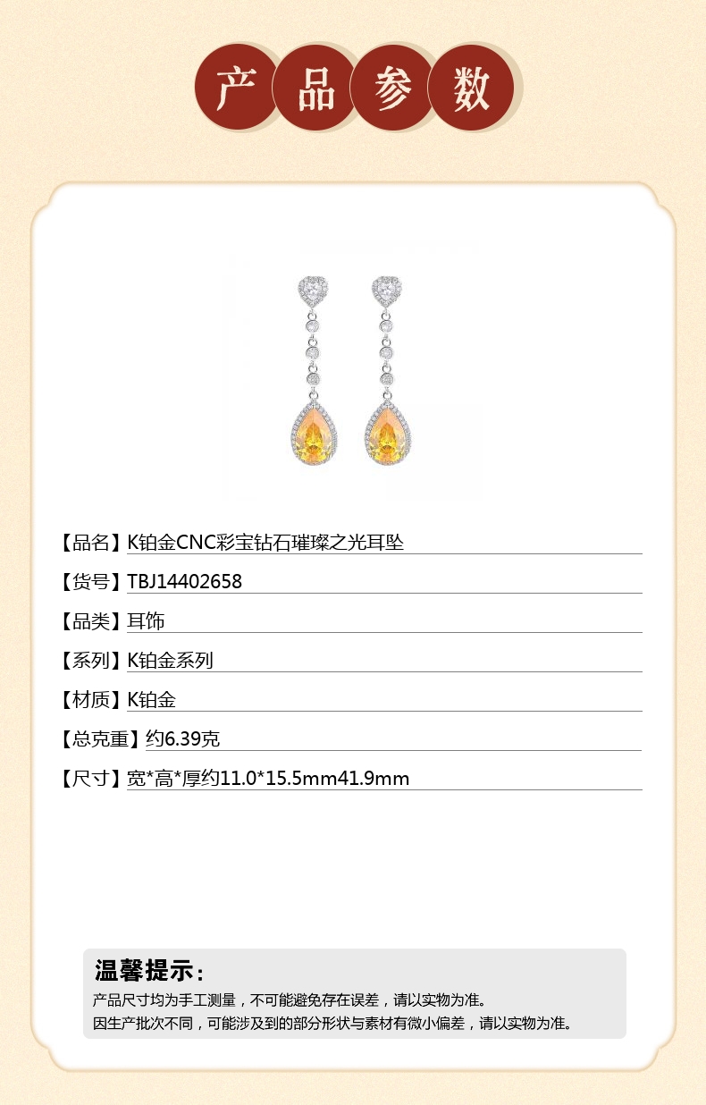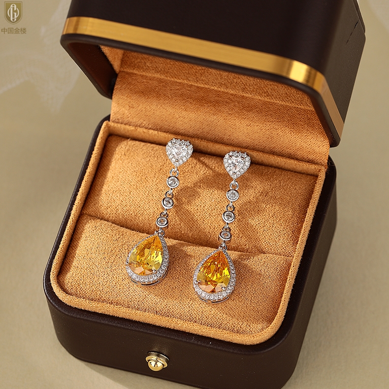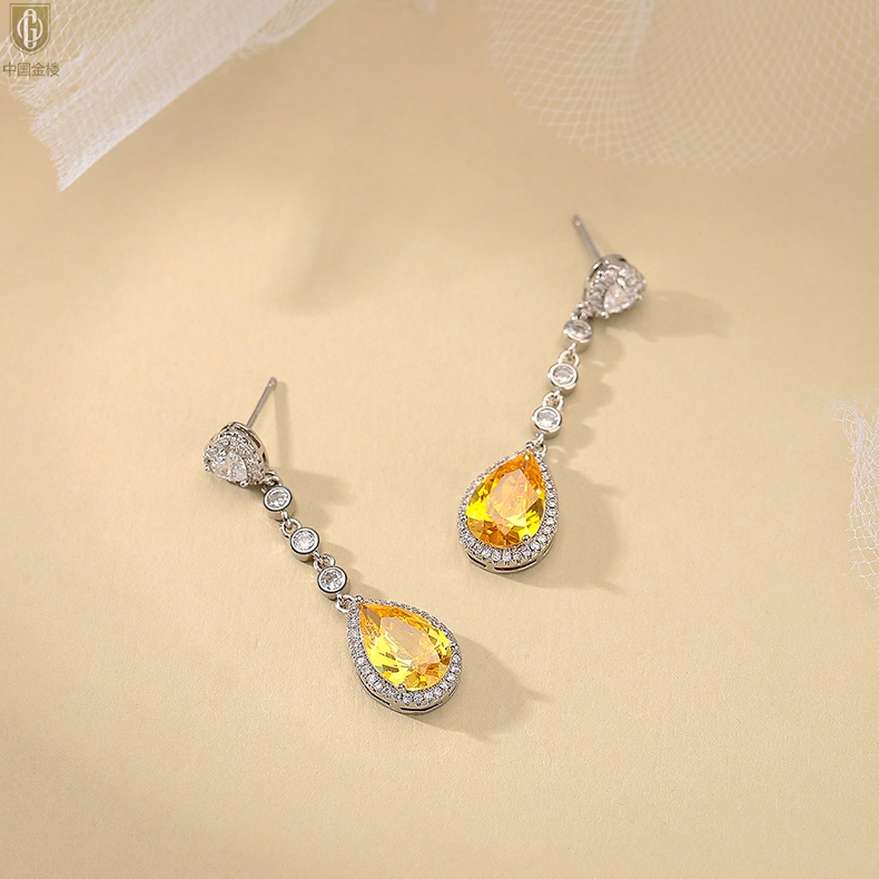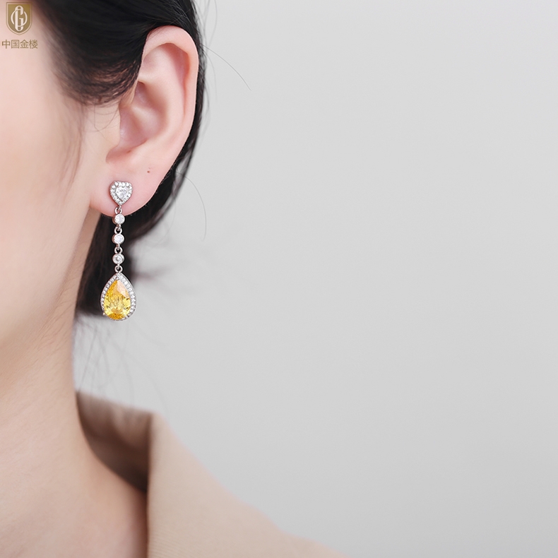 【品名】中国金楼K铂金CNC彩宝钻石璀璨之光耳坠