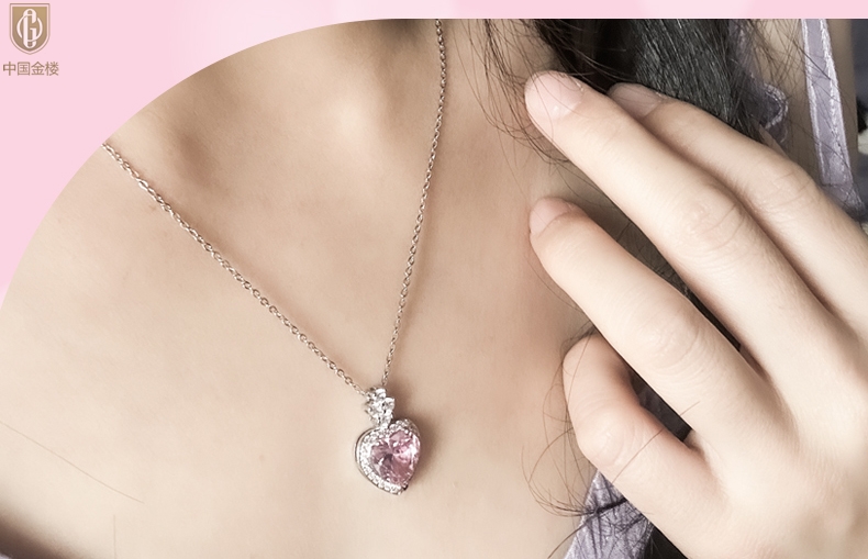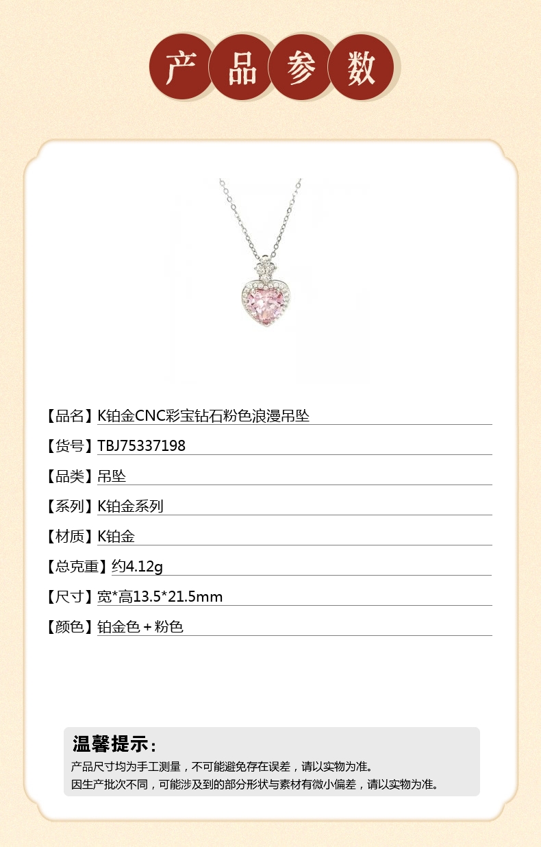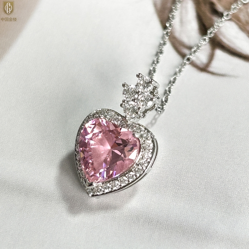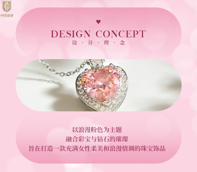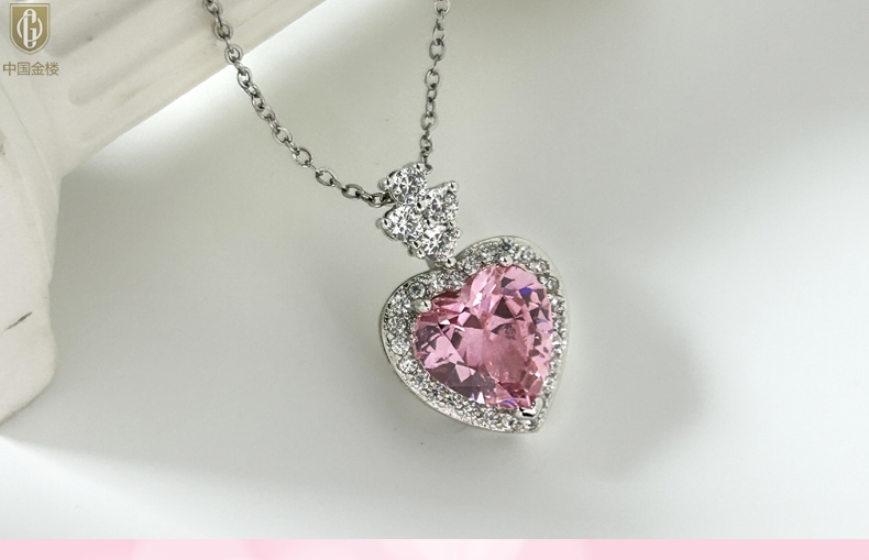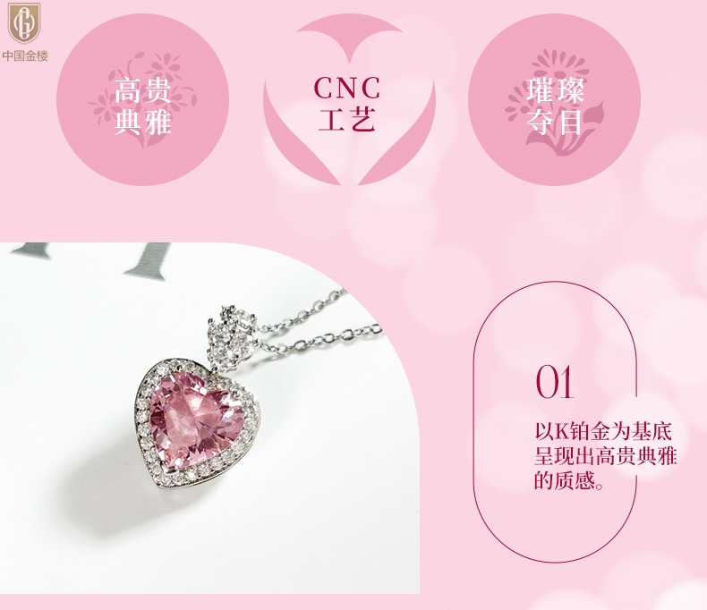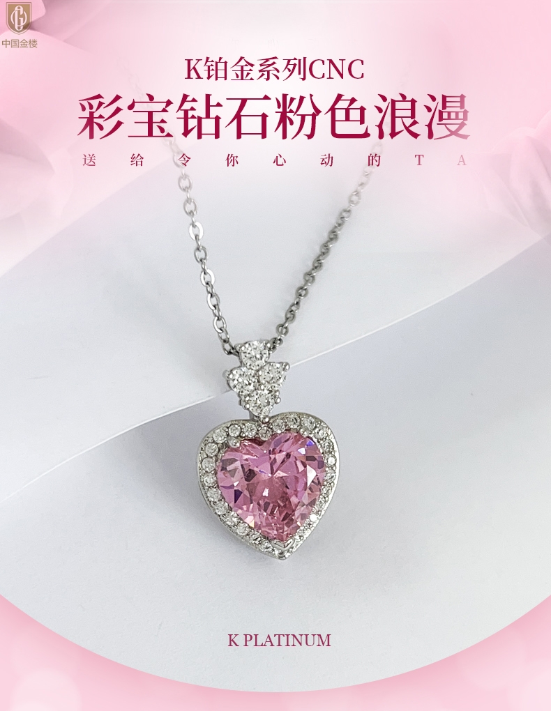 【品名】中国金楼K铂金CNC彩宝钻石粉色浪漫吊坠