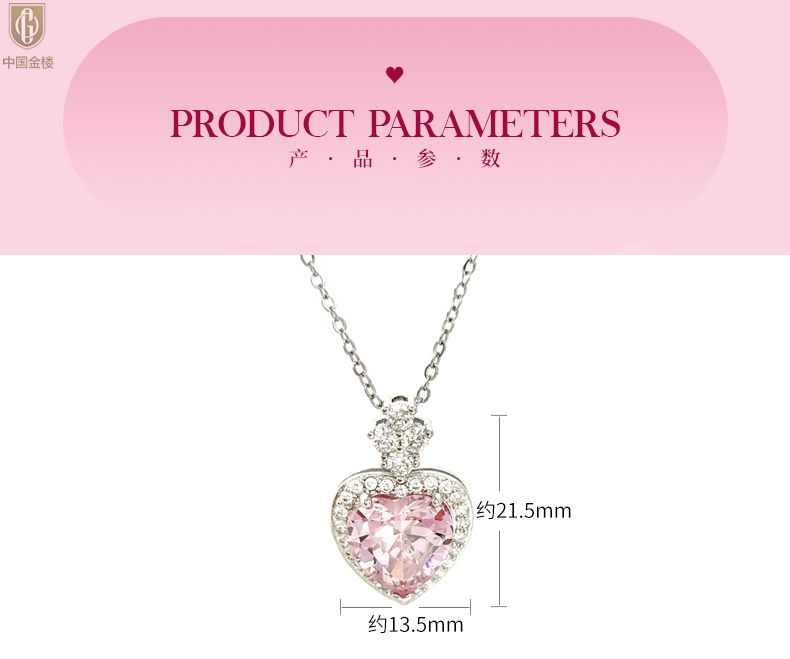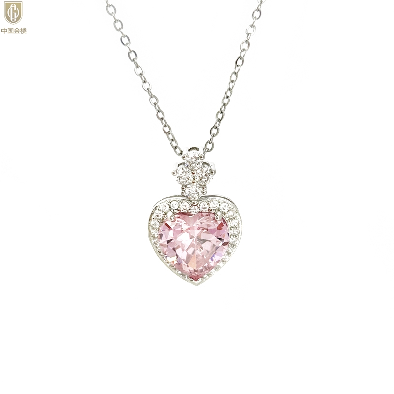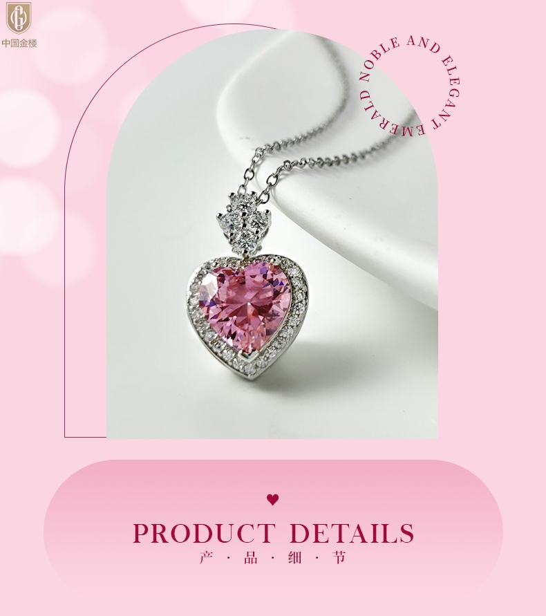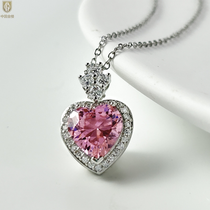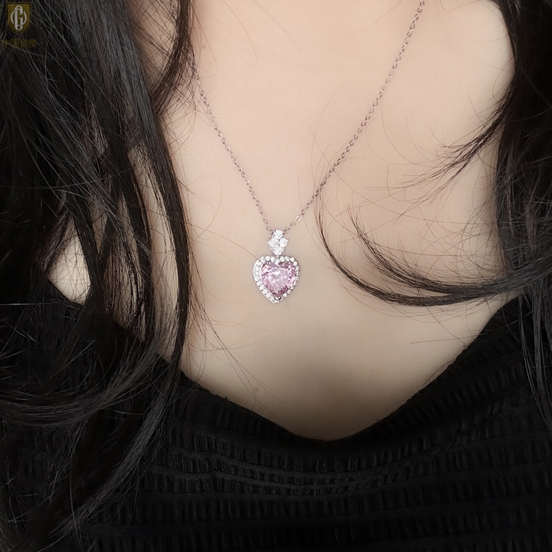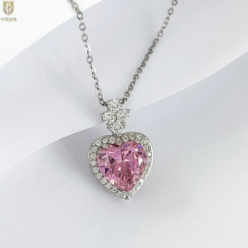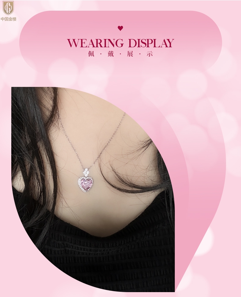 【品名】中国金楼K铂金CNC彩宝钻石粉色浪漫吊坠