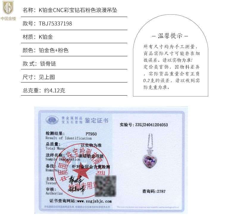 【套装包含】首饰+礼品盒+礼品袋+国检证书+质保单+价签