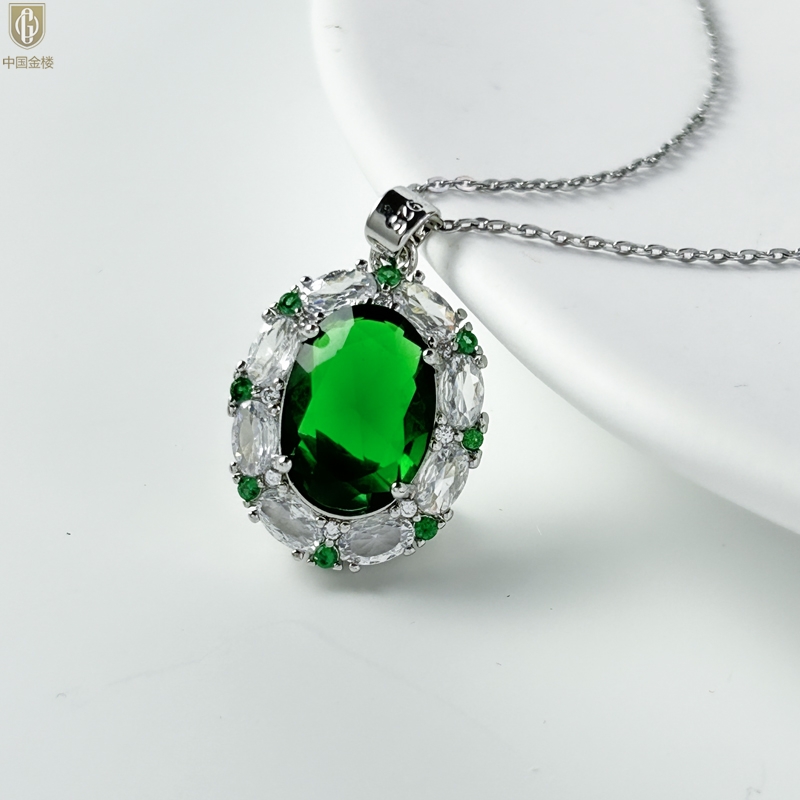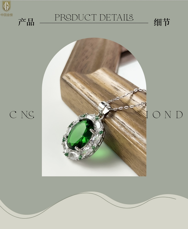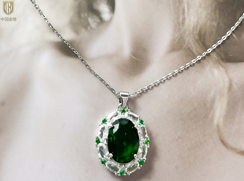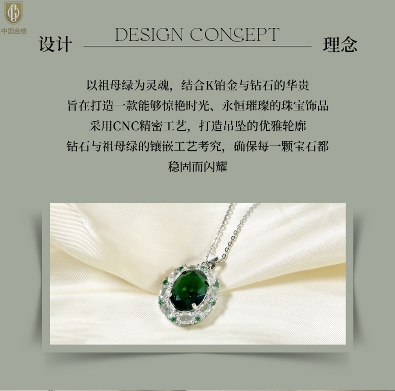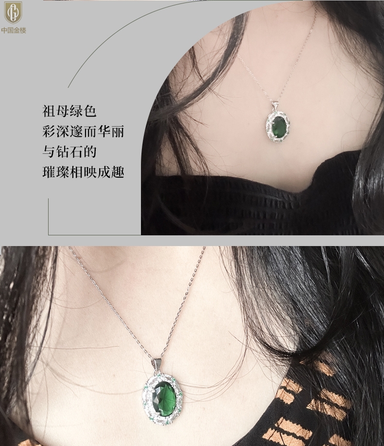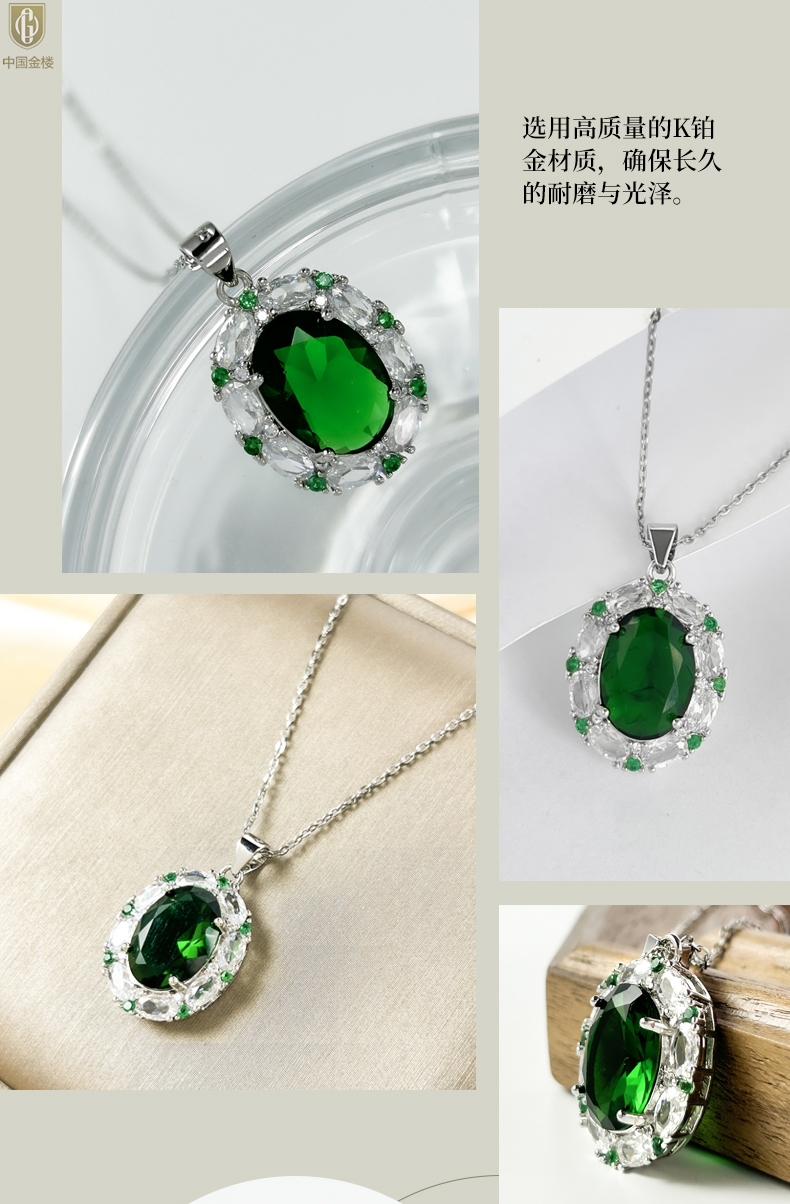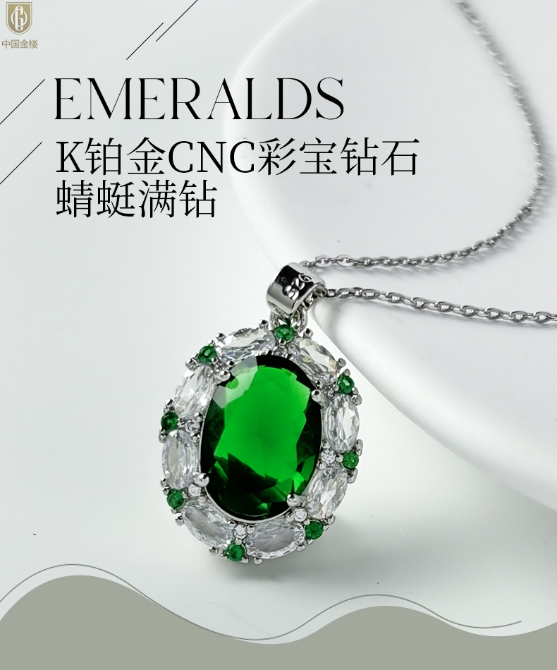 【品名】中国金楼K铂金CNC彩宝钻石惊艳时光祖母绿吊坠