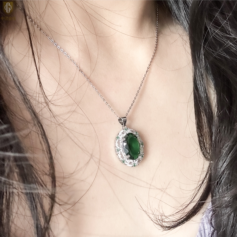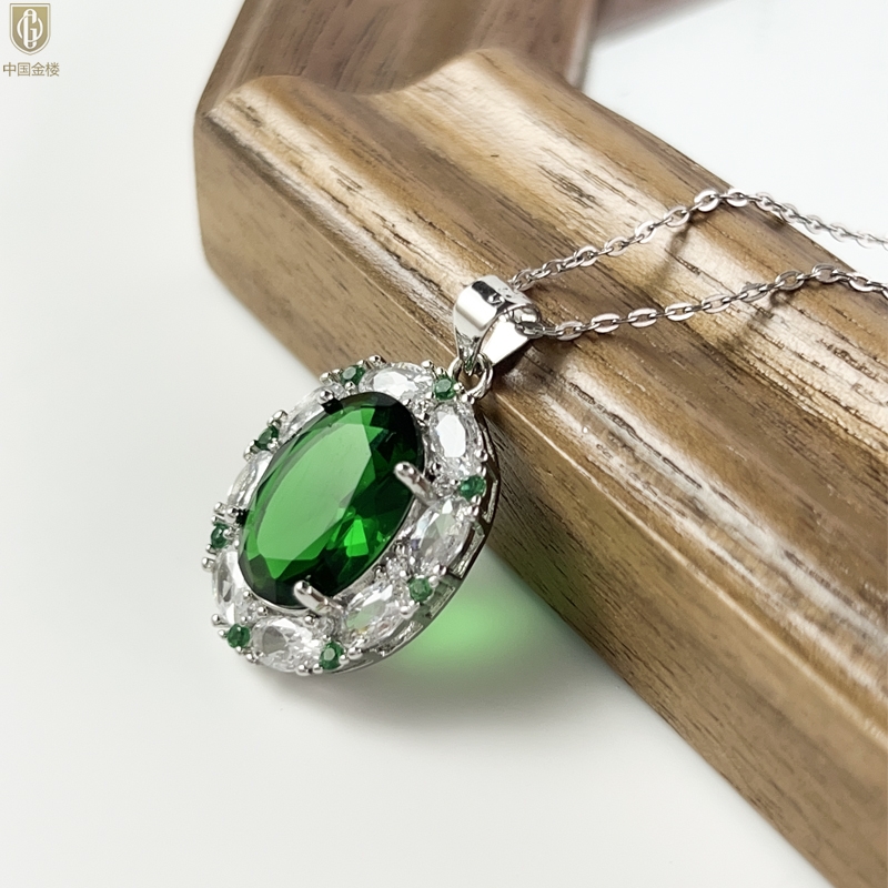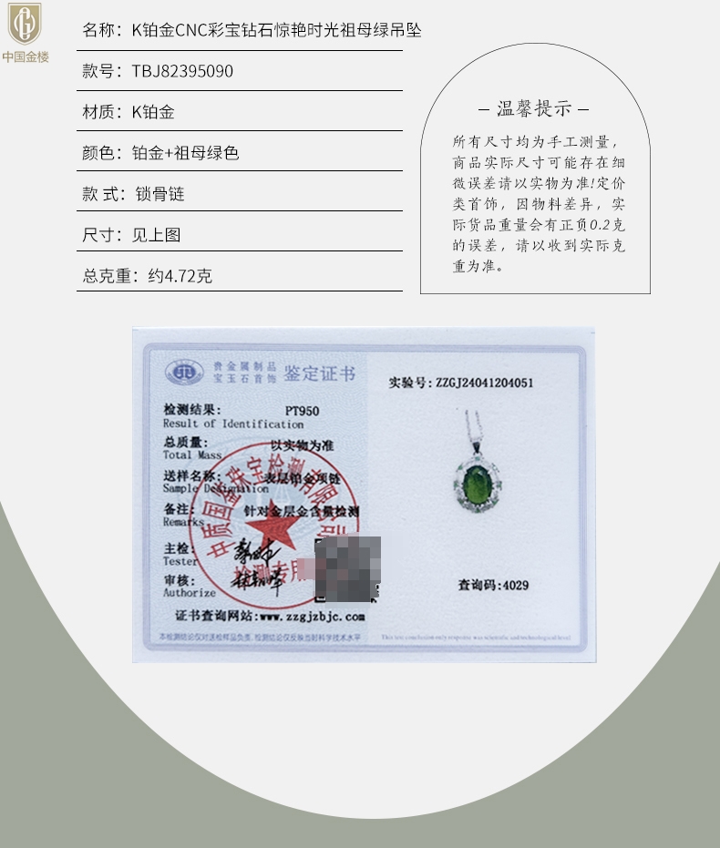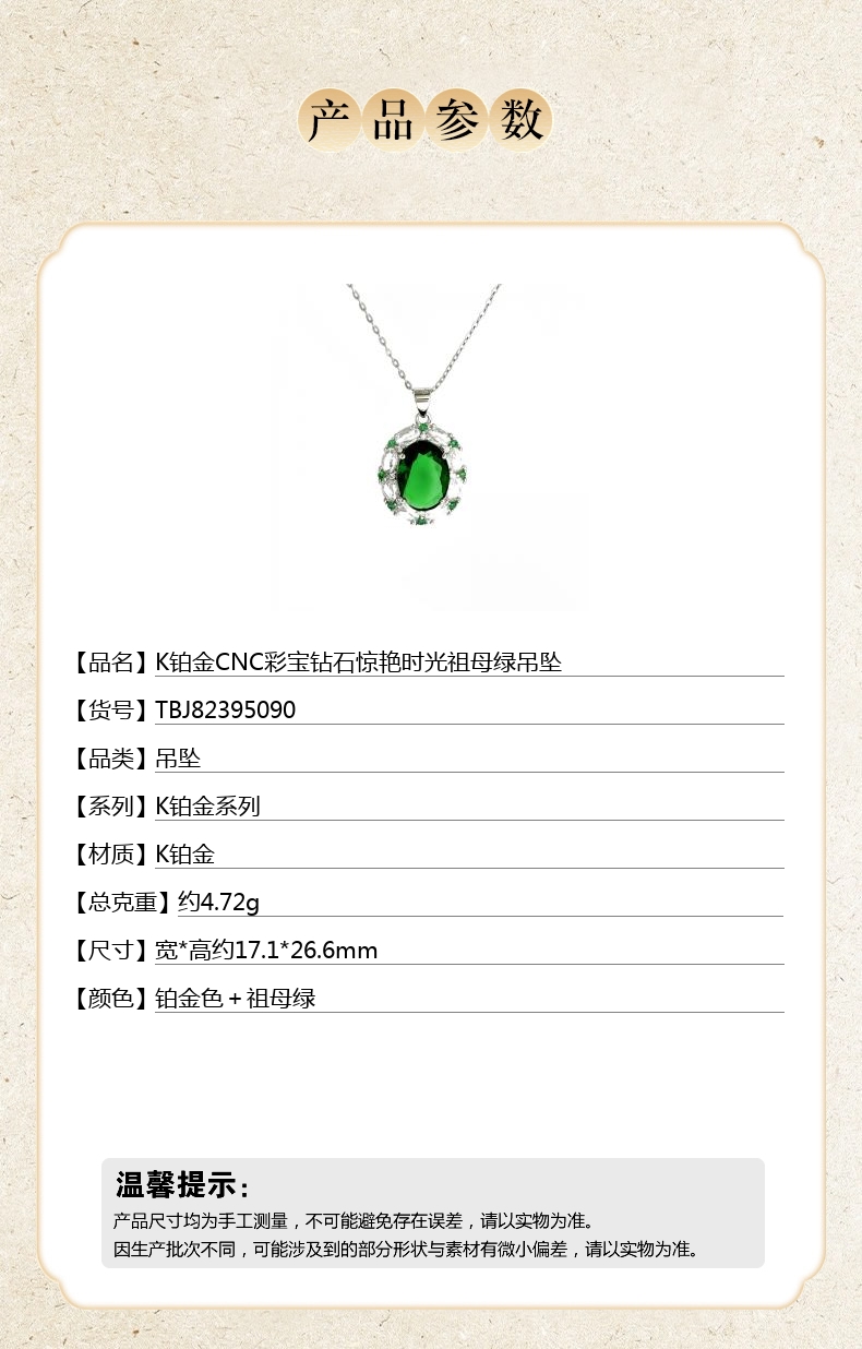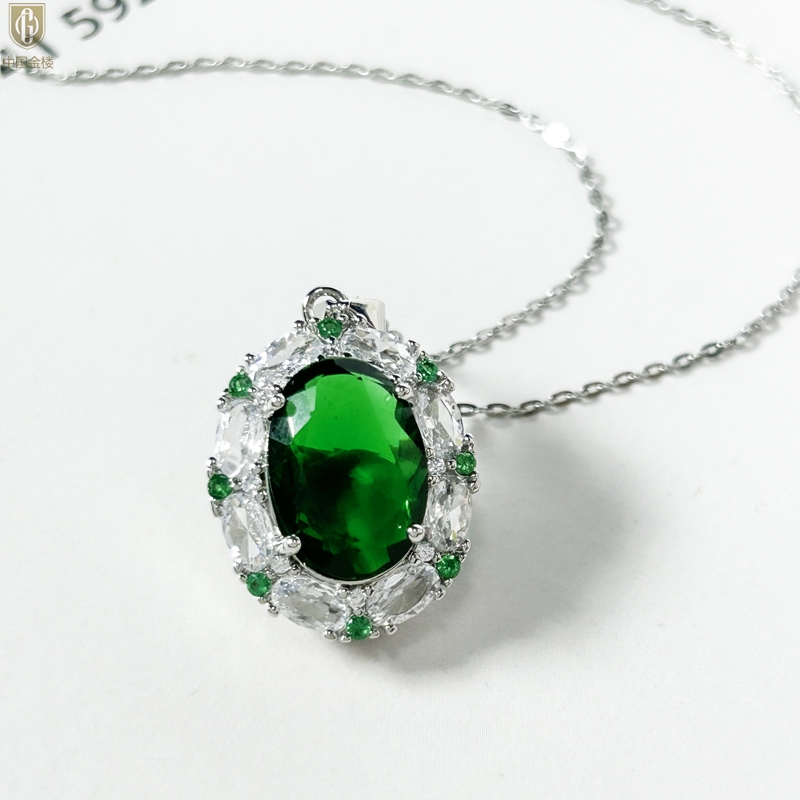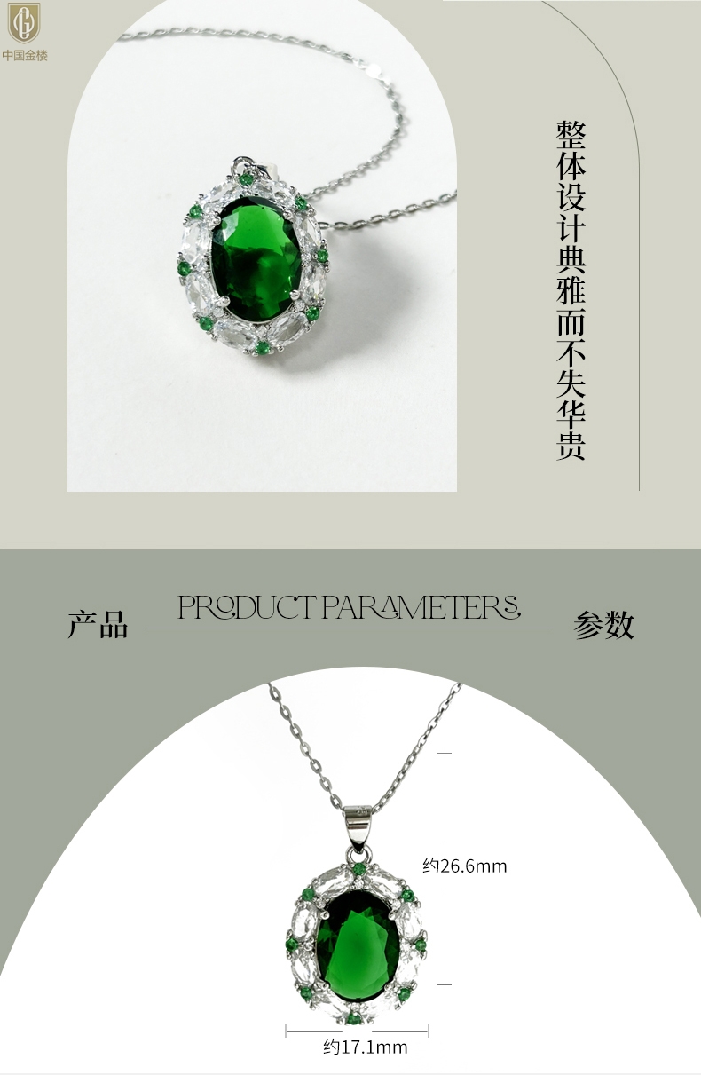 【品名】中国金楼K铂金CNC彩宝钻石惊艳时光祖母绿吊坠
