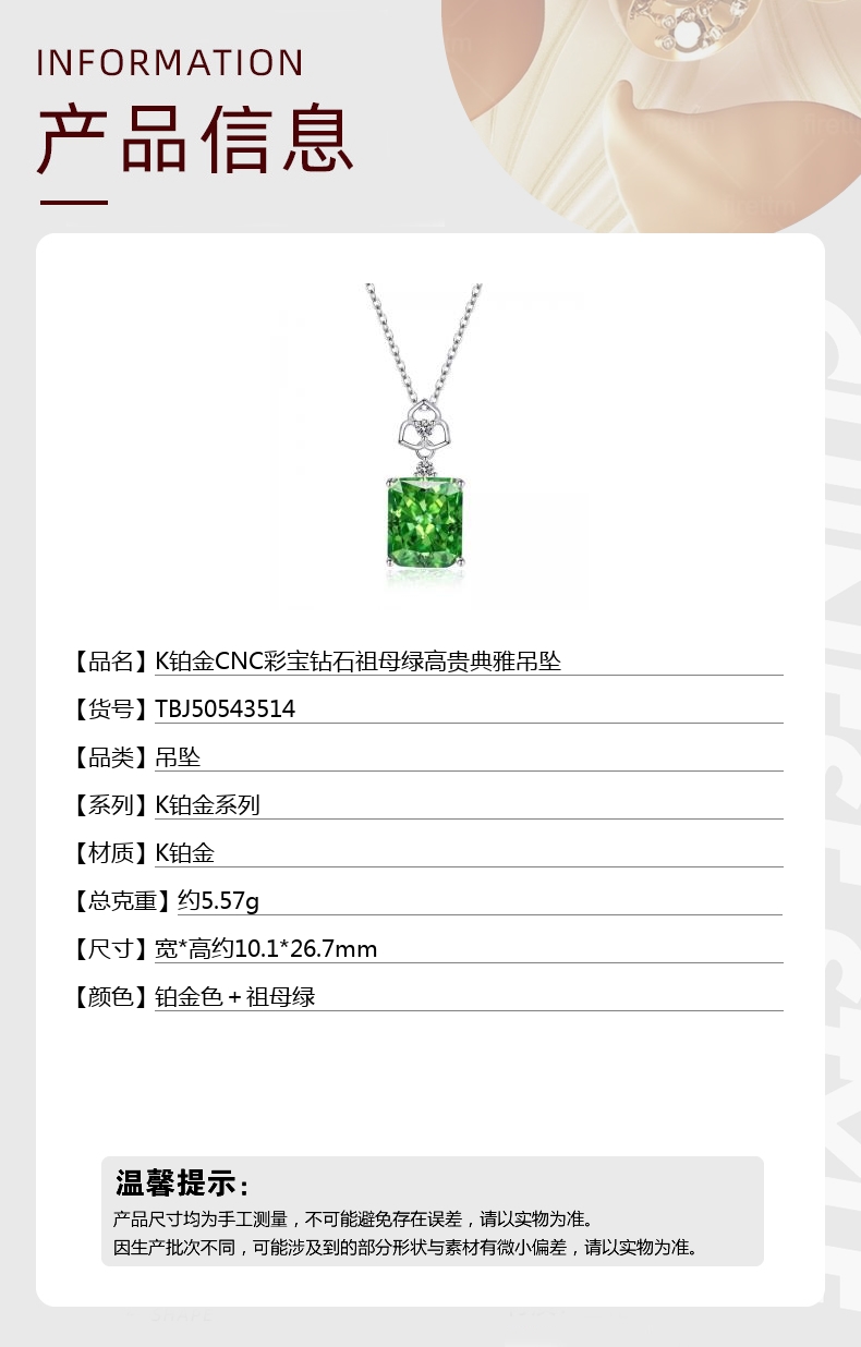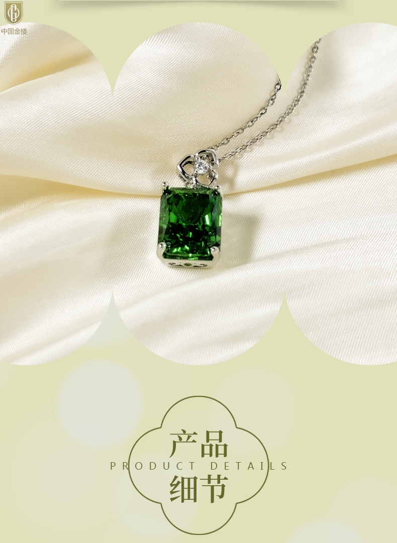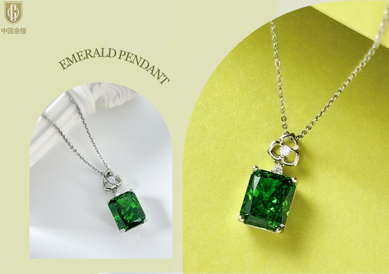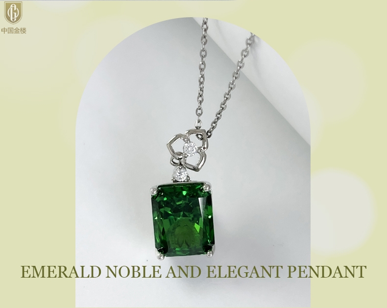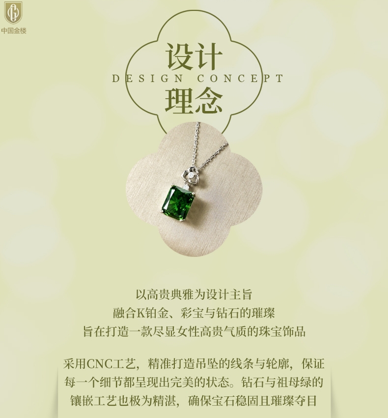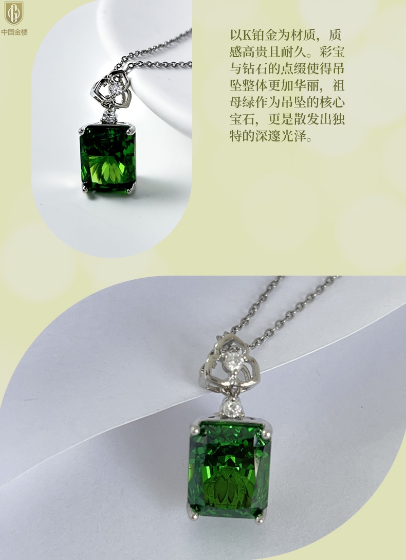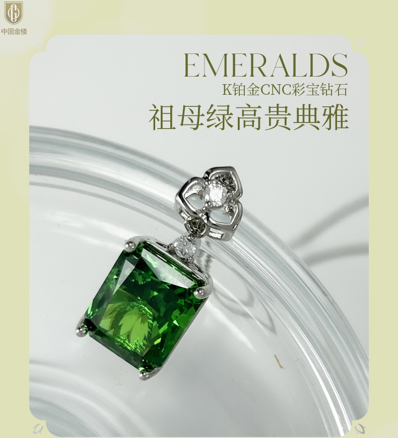 【品名】中国金楼K铂金CNC彩宝钻石祖母绿高贵典雅吊坠