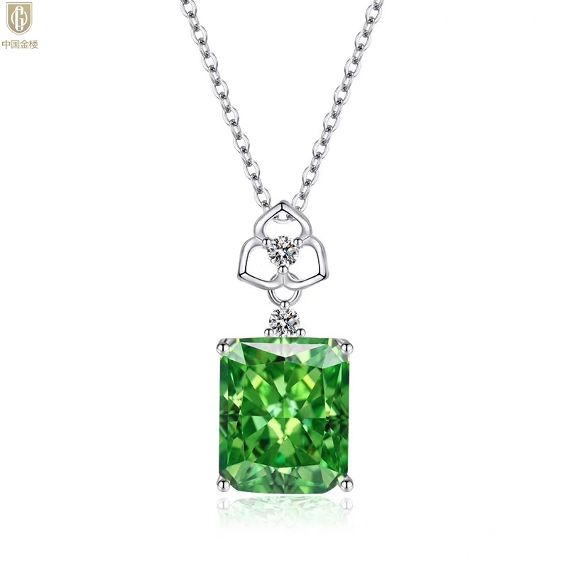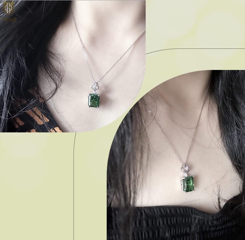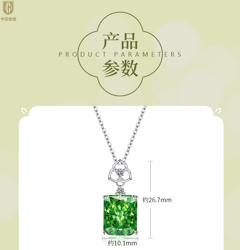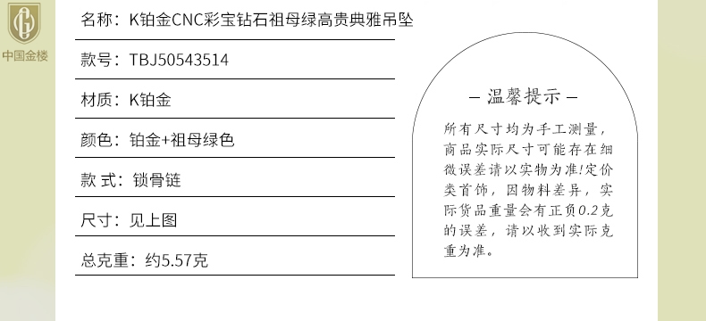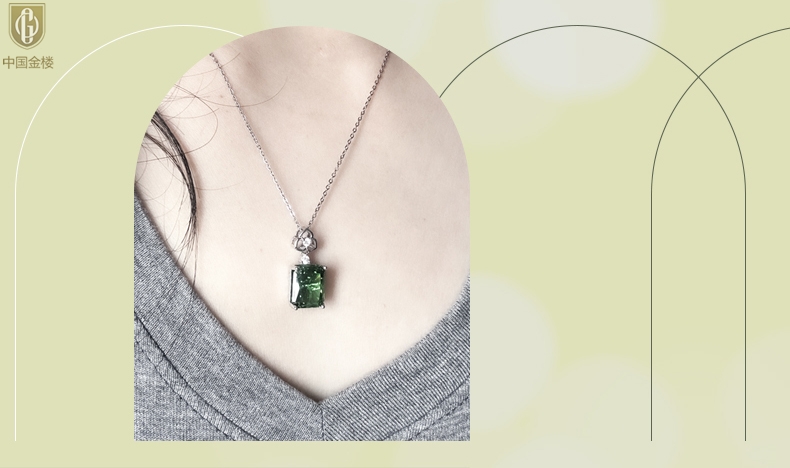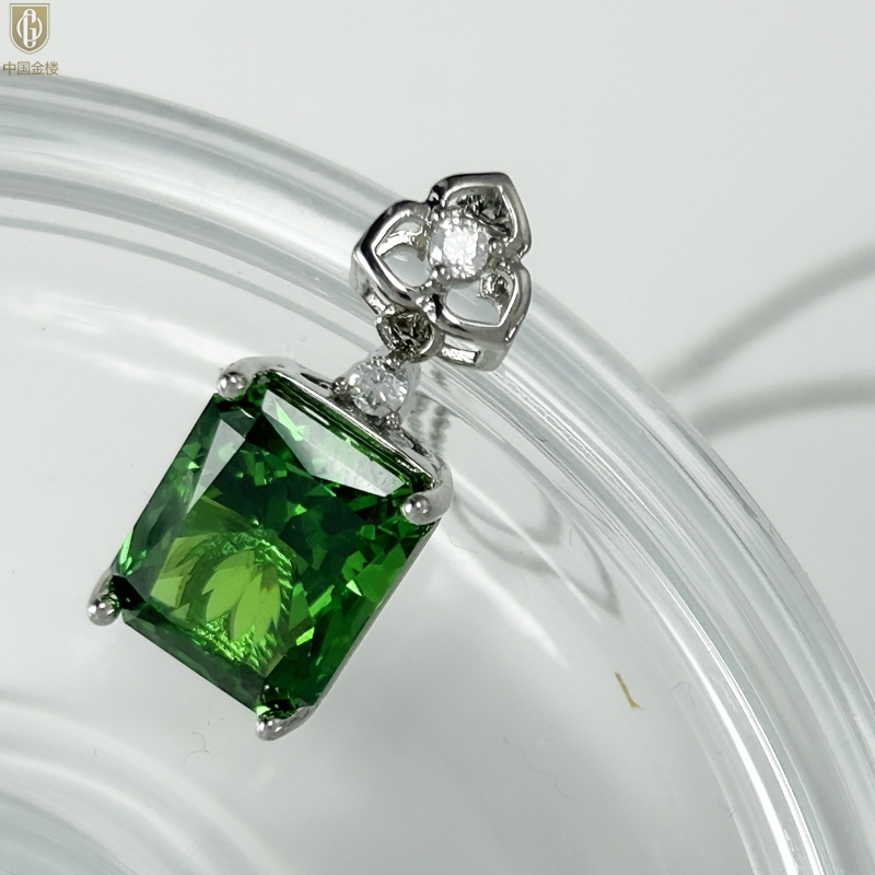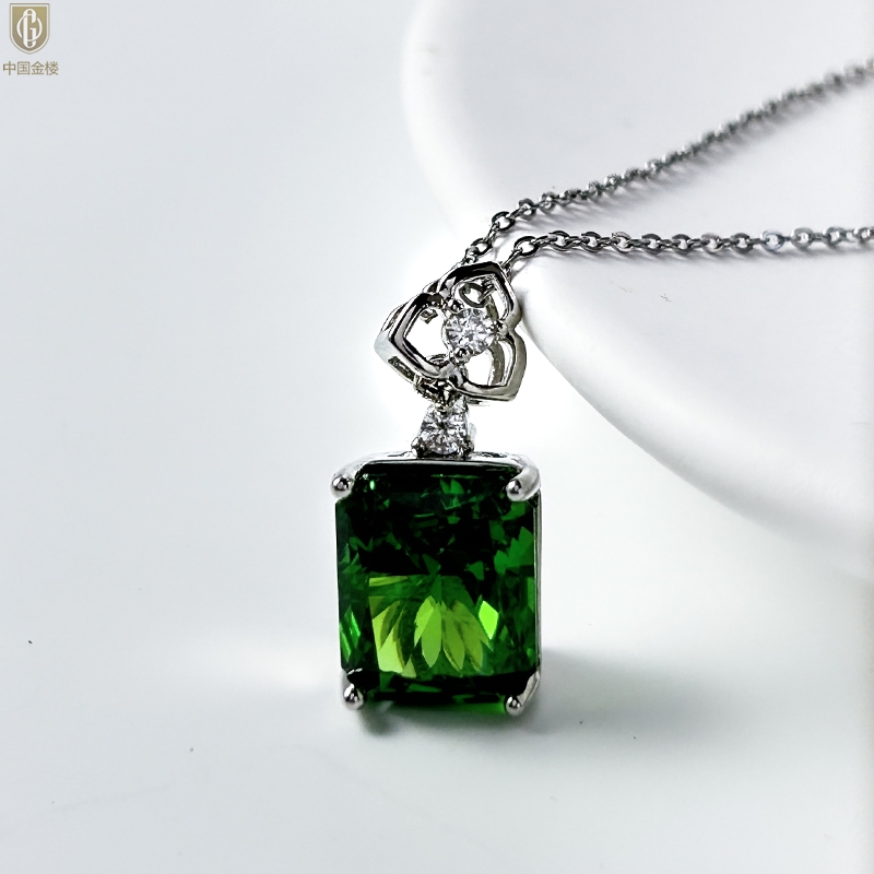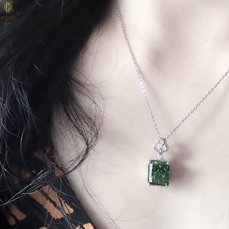 【品名】中国金楼K铂金CNC彩宝钻石祖母绿高贵典雅吊坠