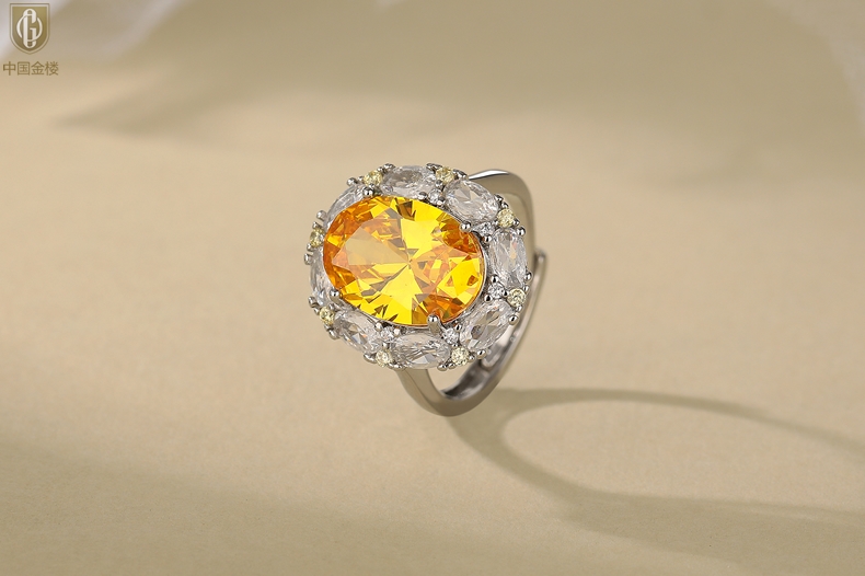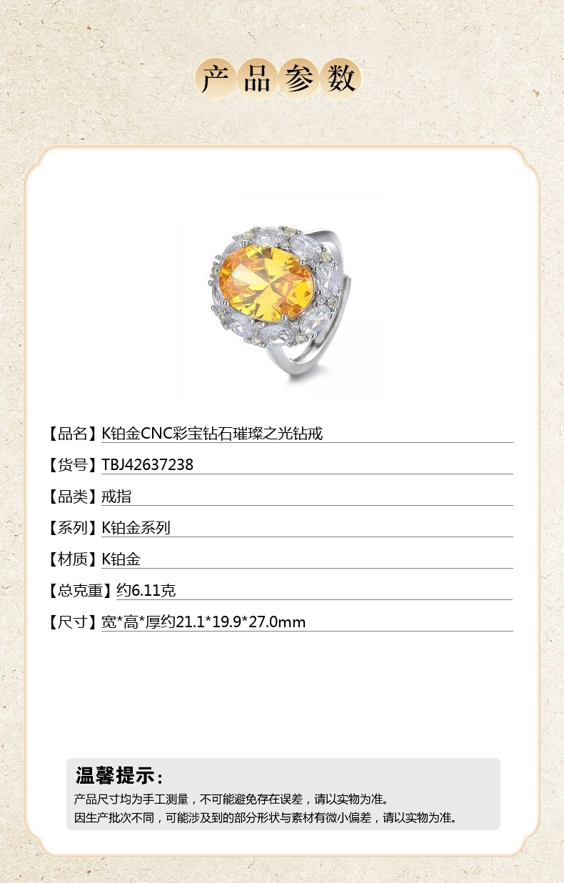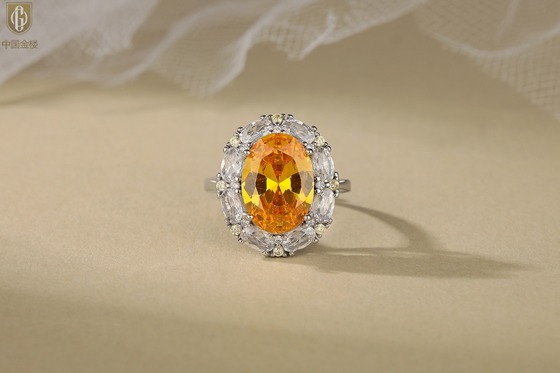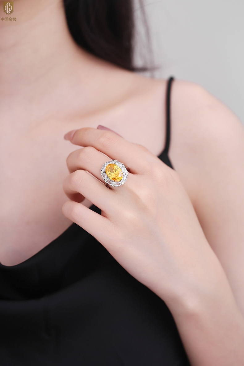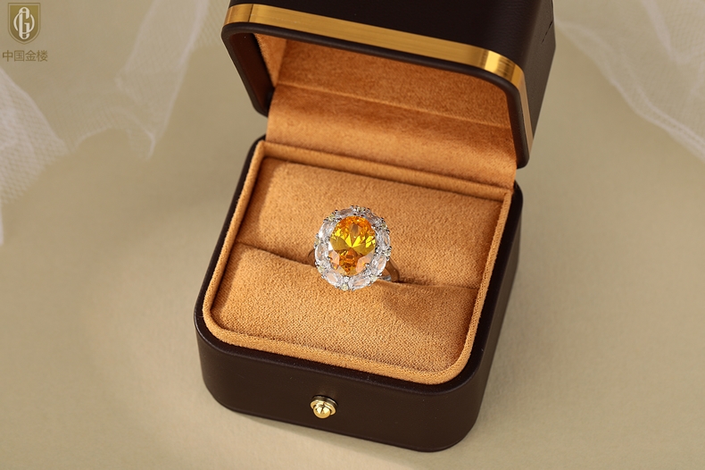 【品名】中国金楼K铂金CNC彩宝钻石璀璨之光钻戒