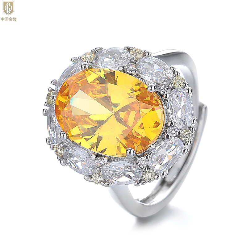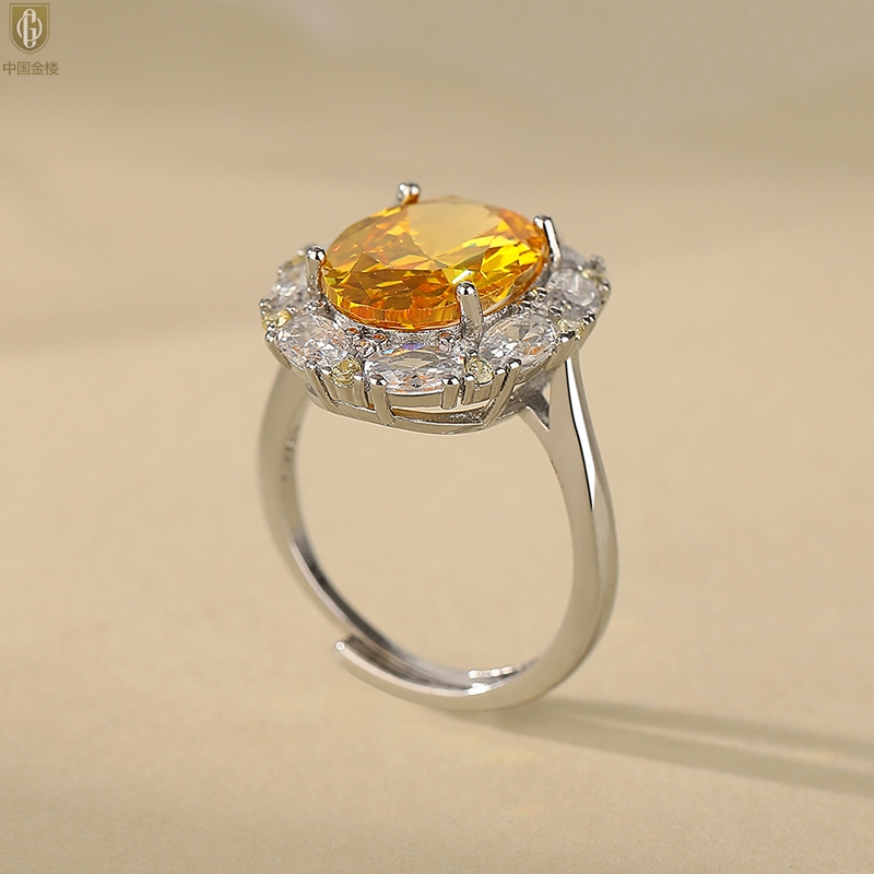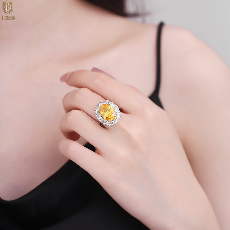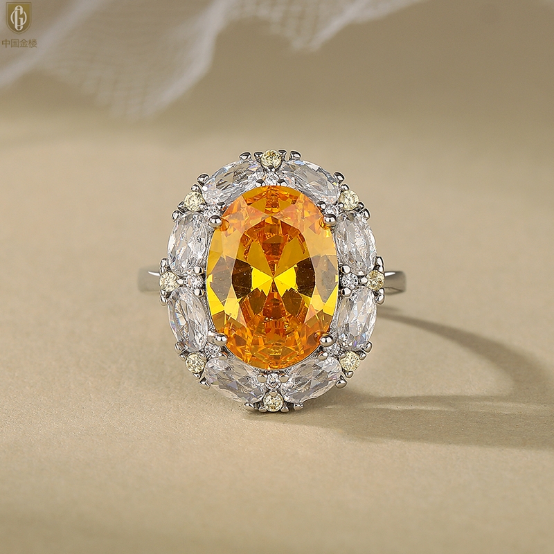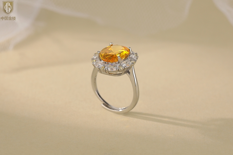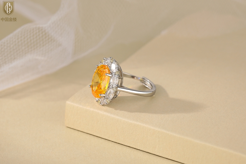 【品名】中国金楼K铂金CNC彩宝钻石璀璨之光钻戒