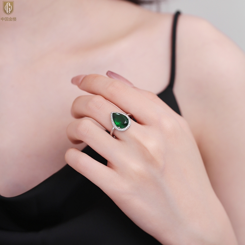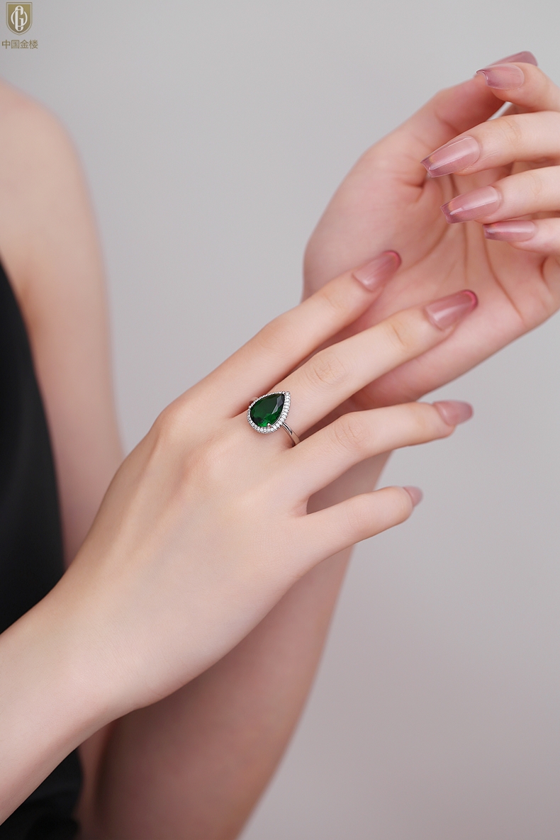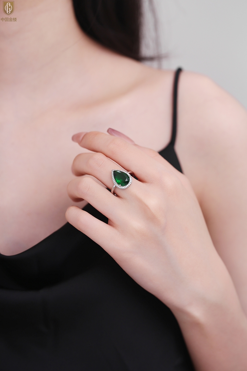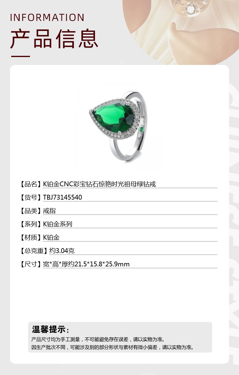 【品名】中国金楼K铂金CNC彩宝钻石惊艳时光祖母绿钻戒