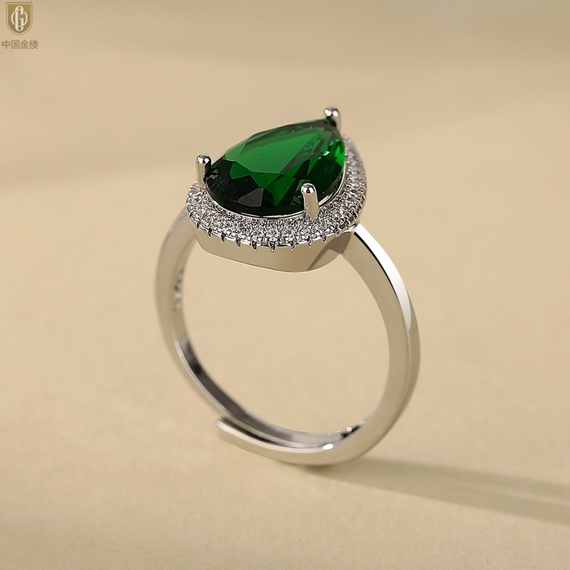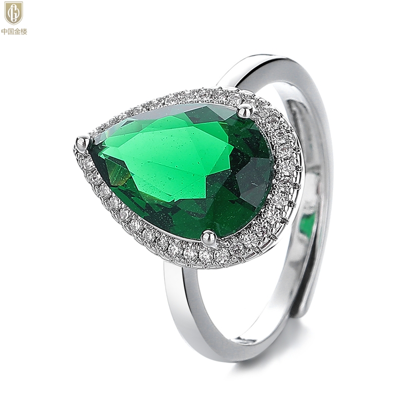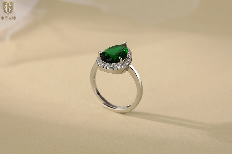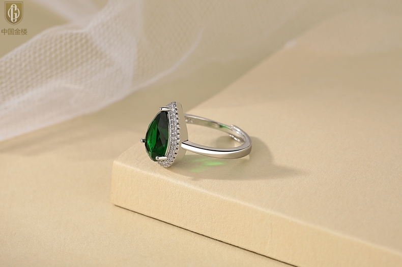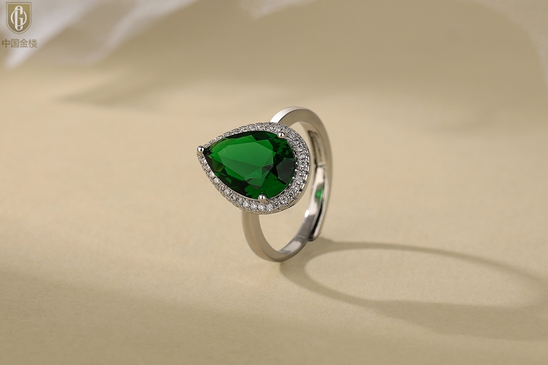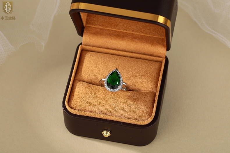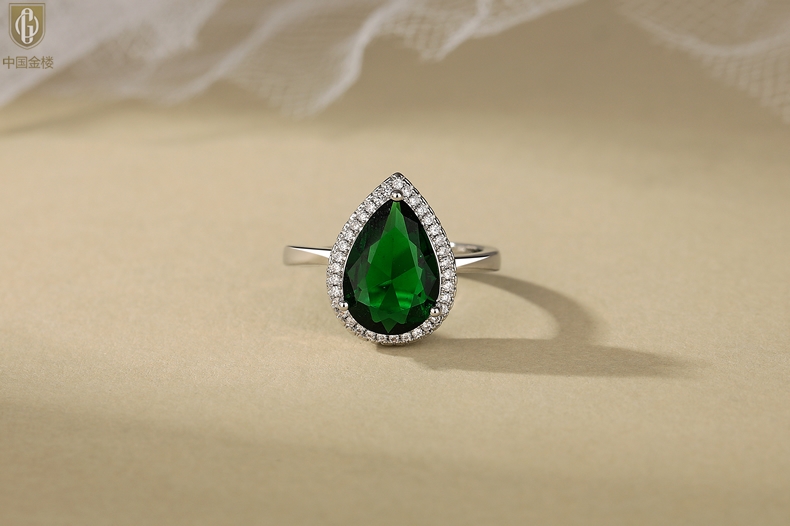 【品名】中国金楼K铂金CNC彩宝钻石惊艳时光祖母绿钻戒