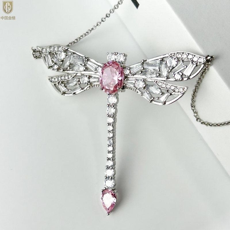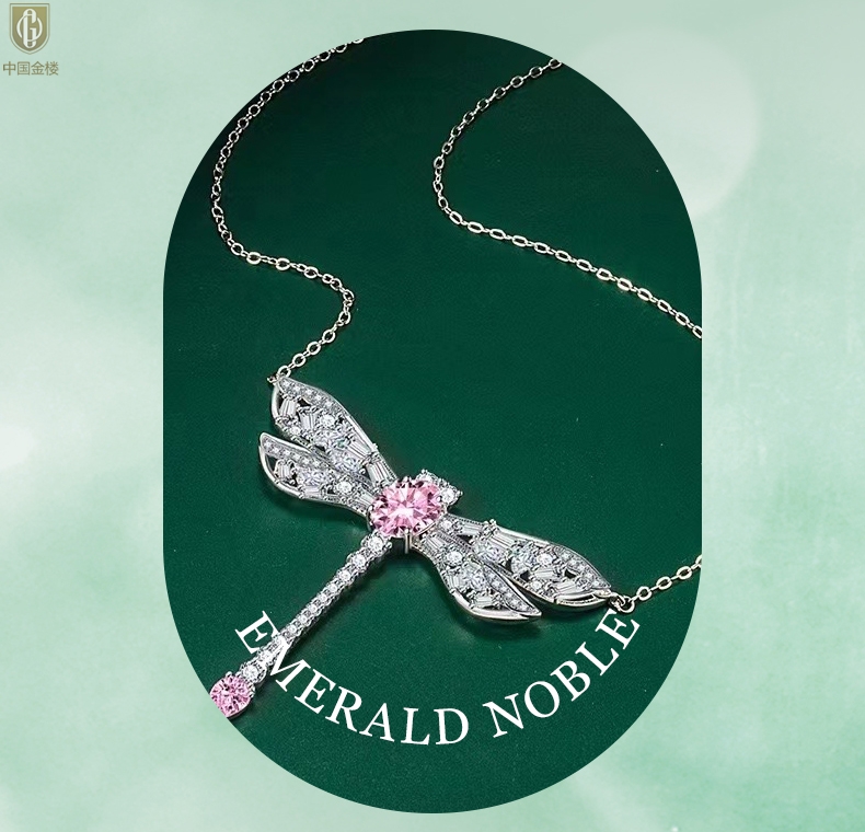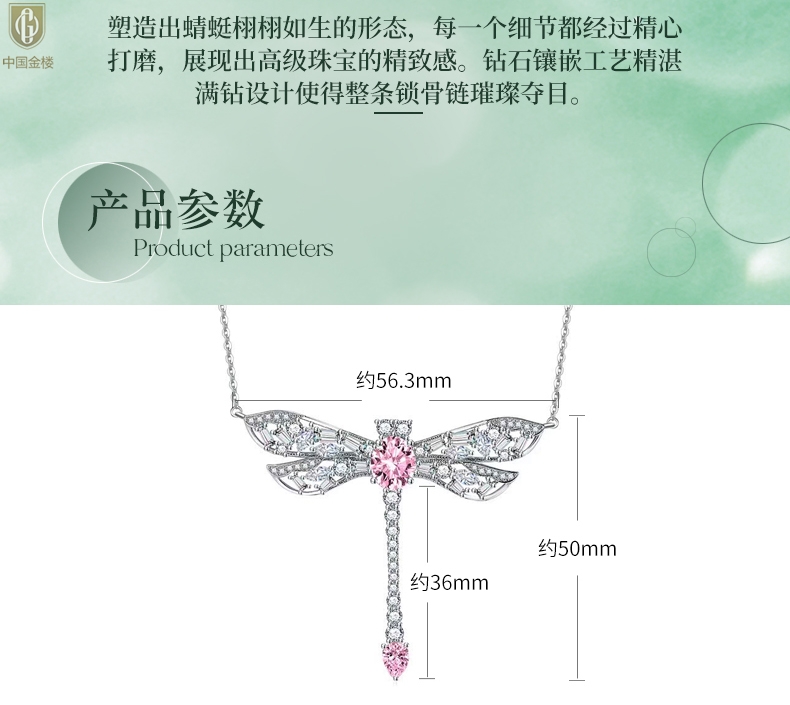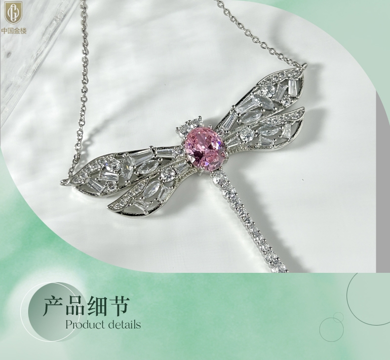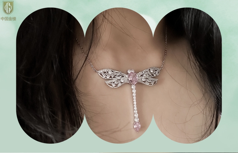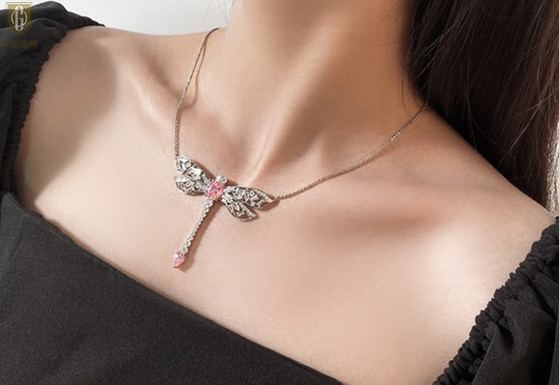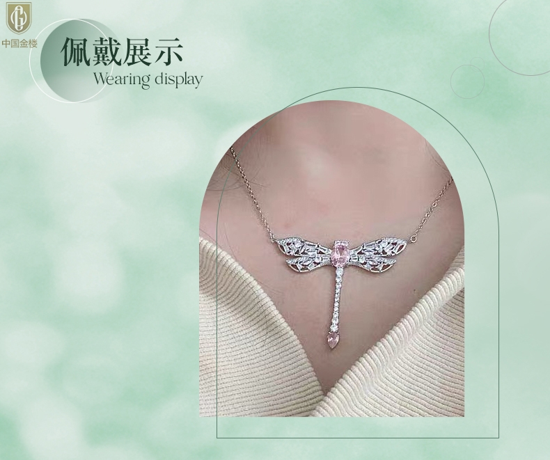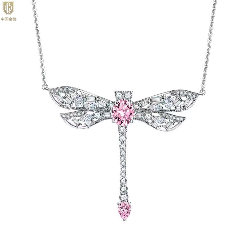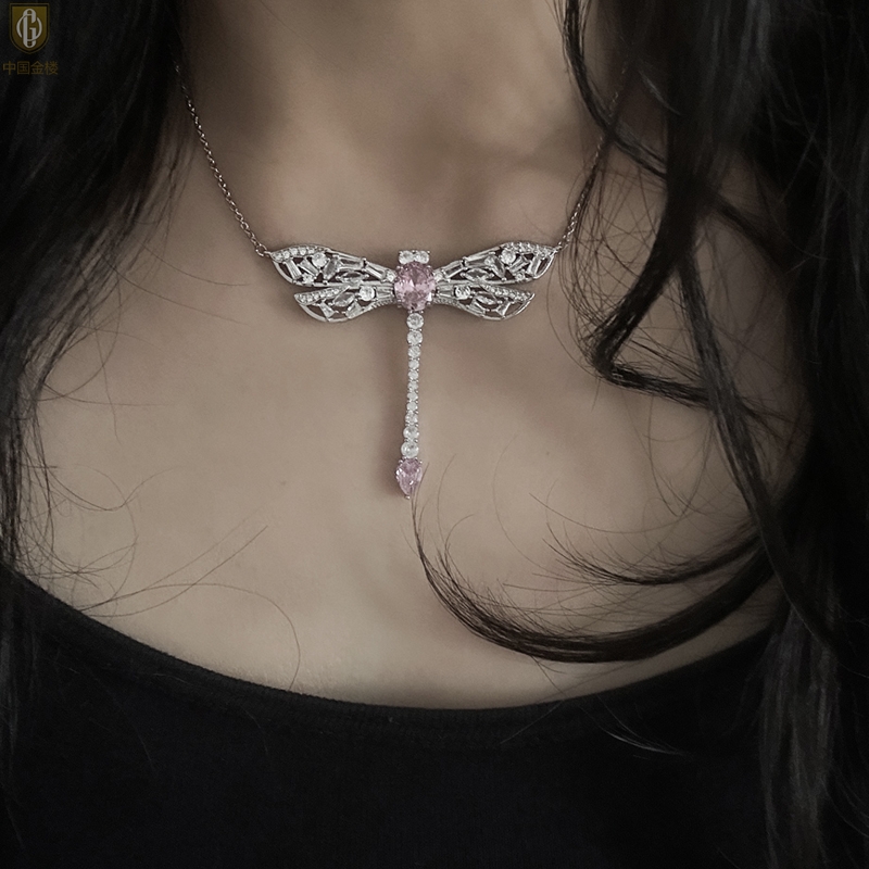 【品名】中国金楼K铂金CNC彩宝钻石蜻蜓满钻锁骨链