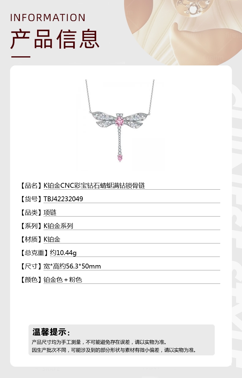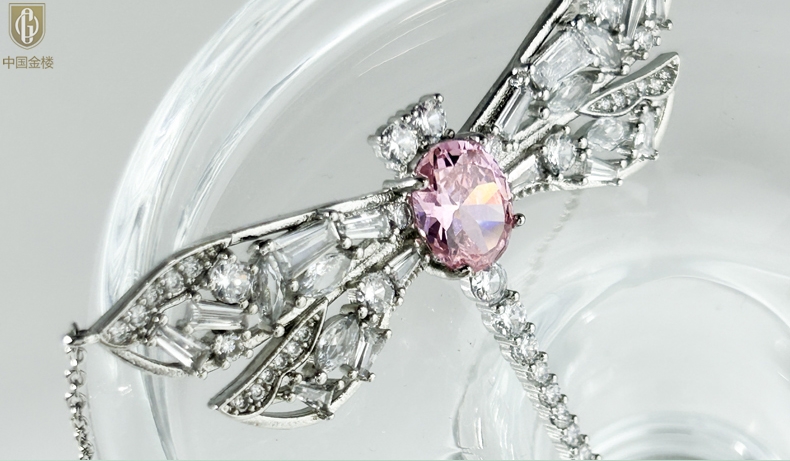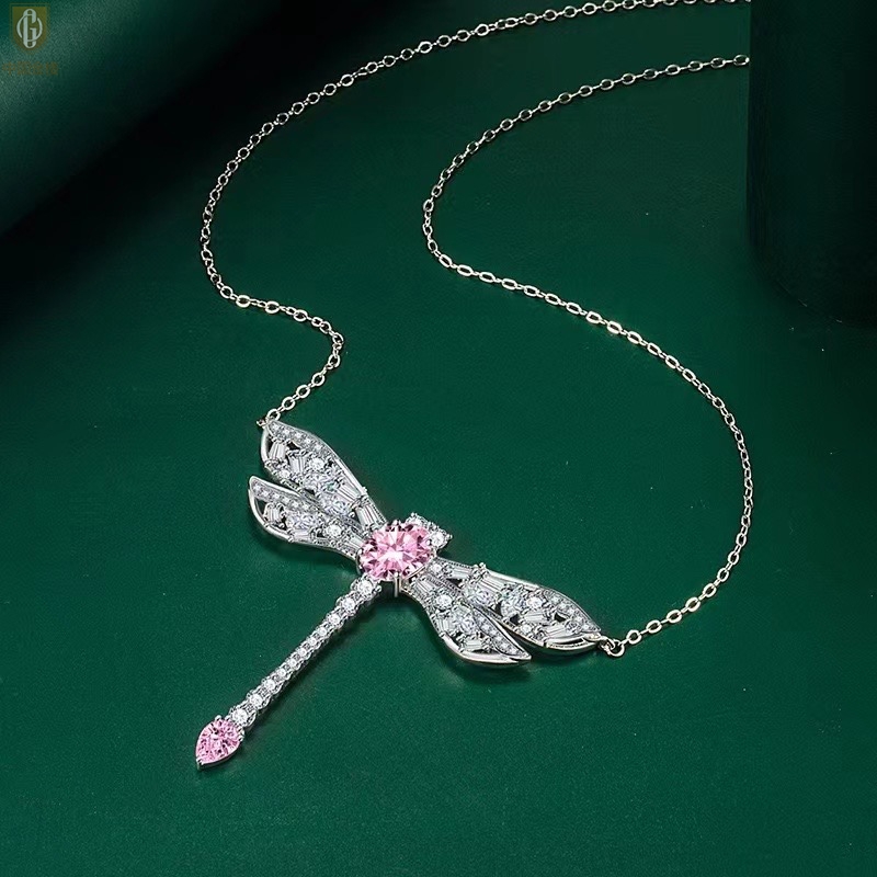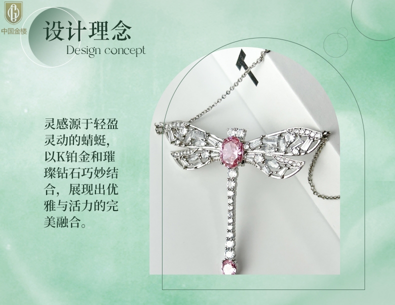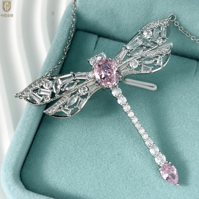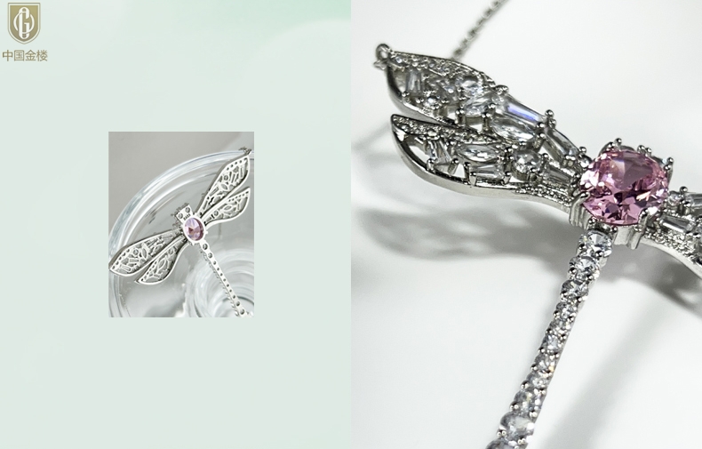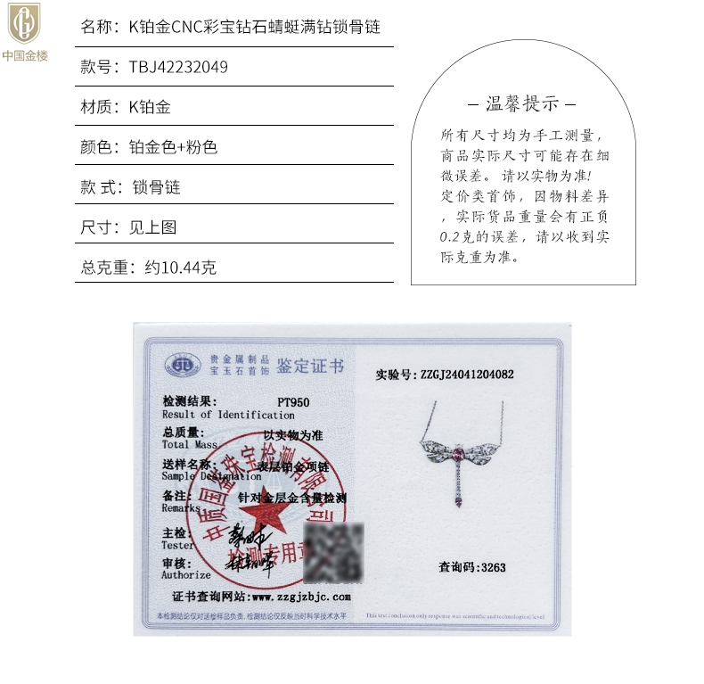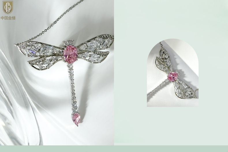 【品名】中国金楼K铂金CNC彩宝钻石蜻蜓满钻锁骨链