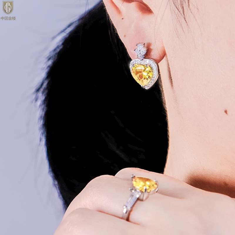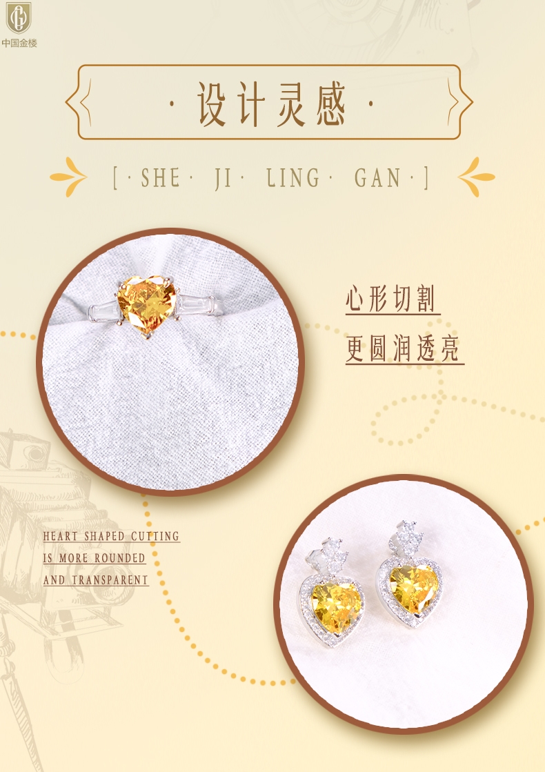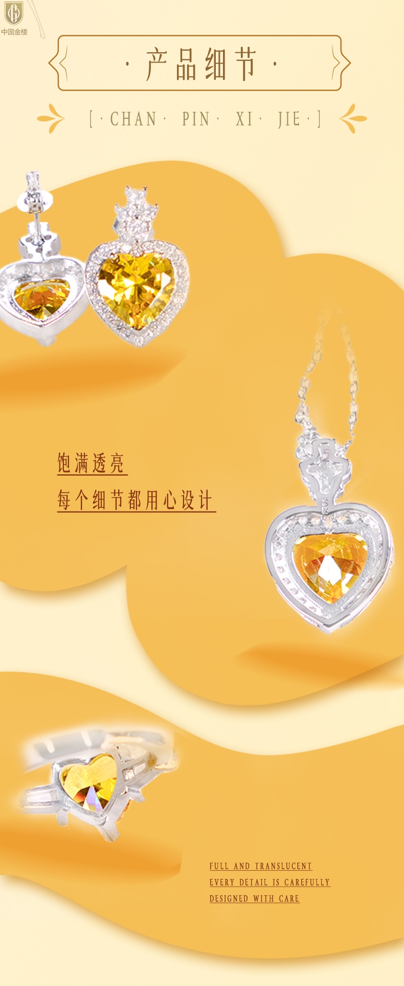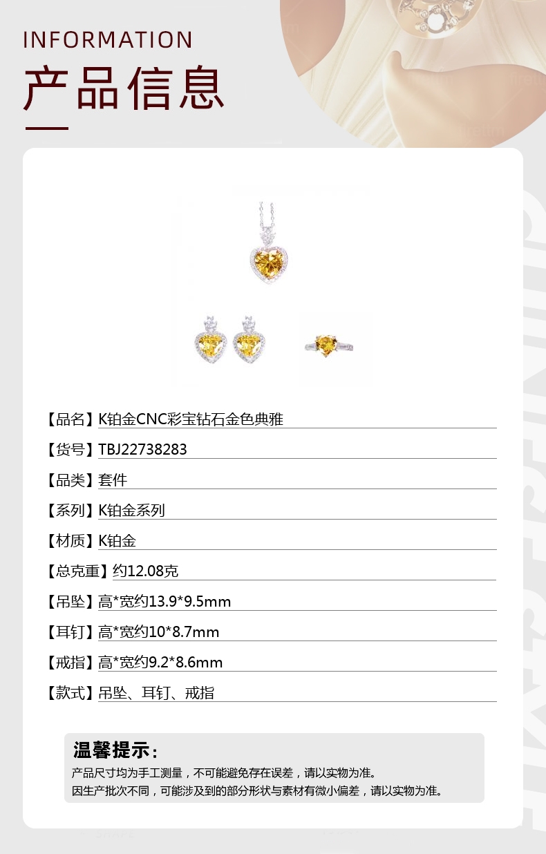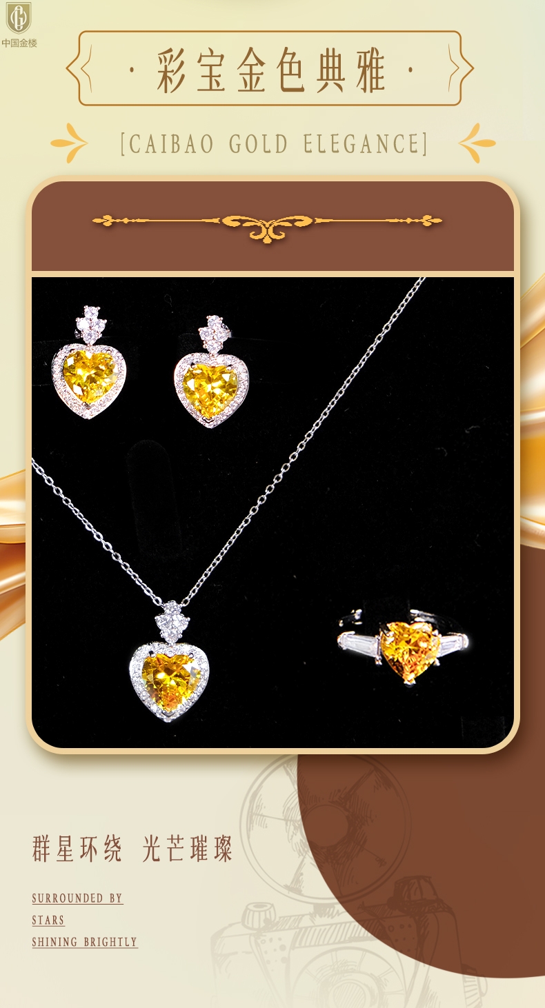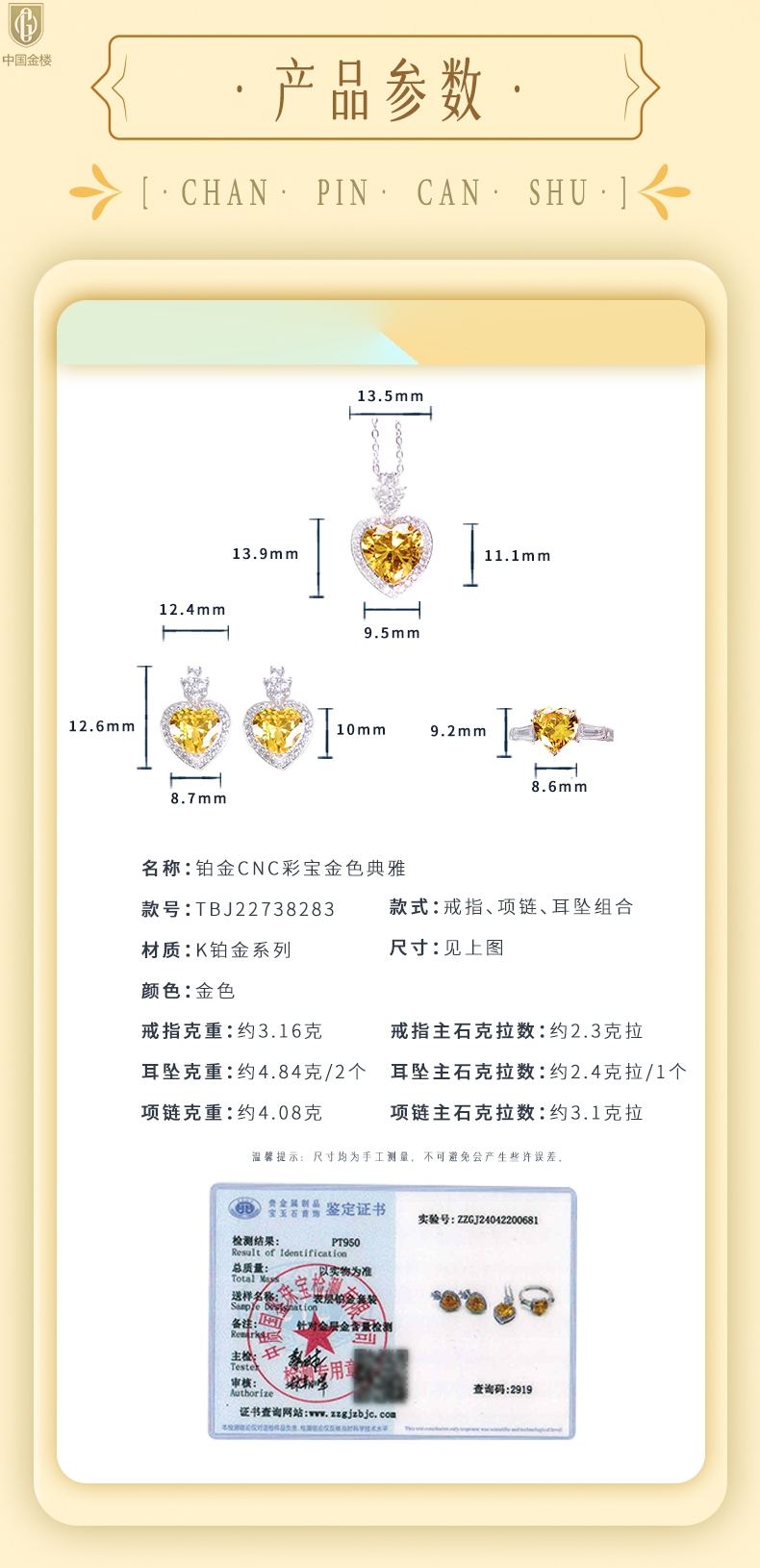 【品名】中国金楼K铂金CNC彩宝钻石金色典雅