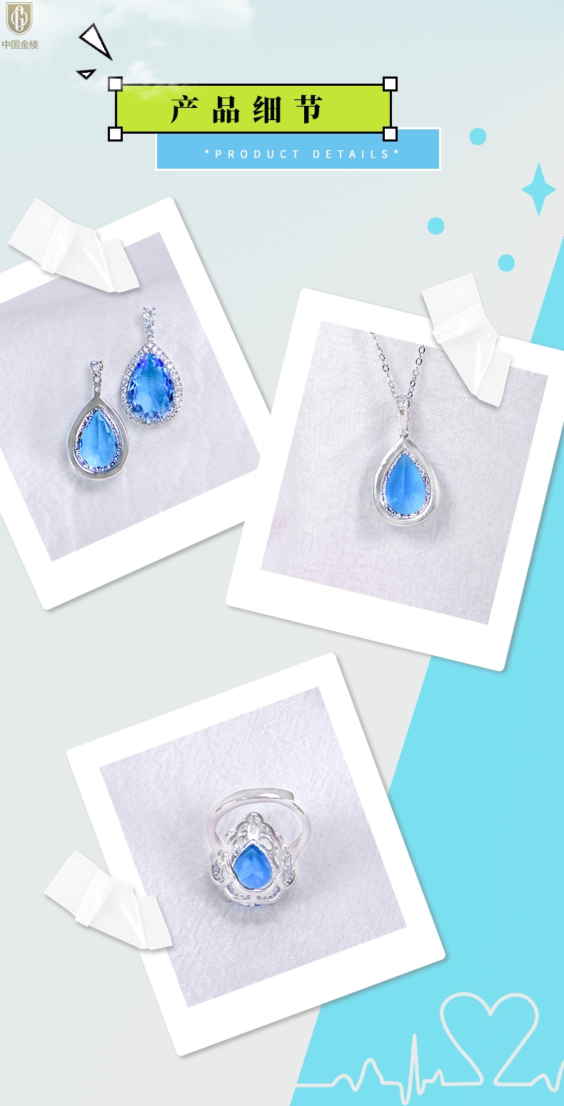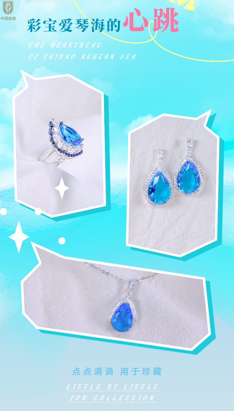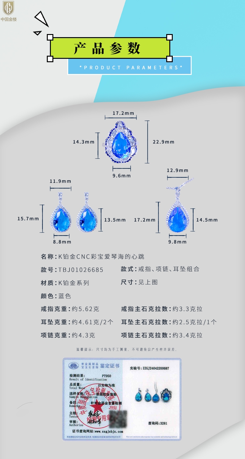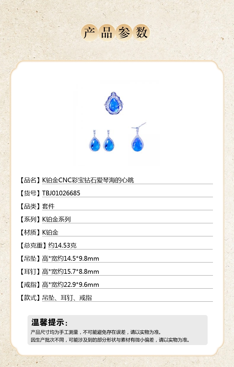 【品名】中国金楼K铂金CNC彩宝钻石爱琴海的心跳