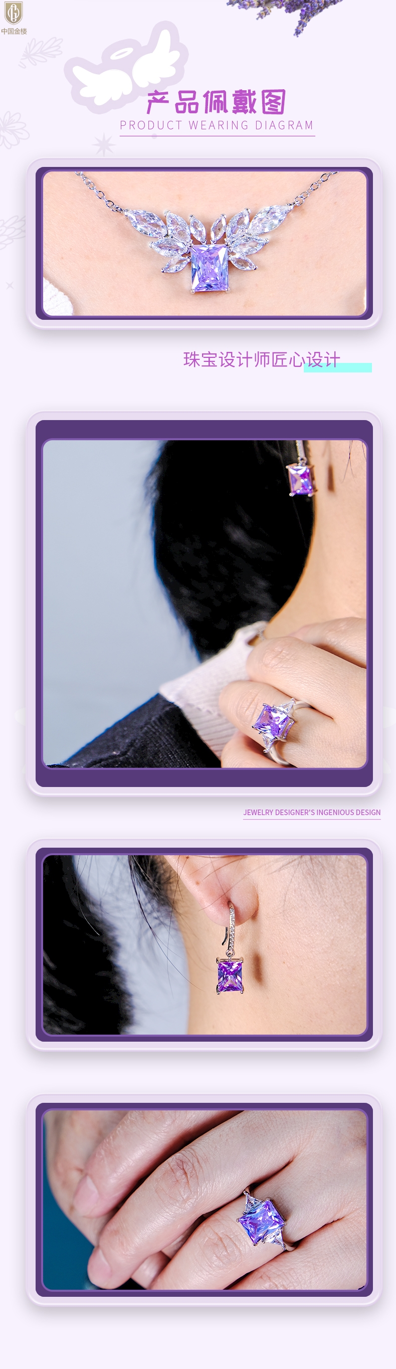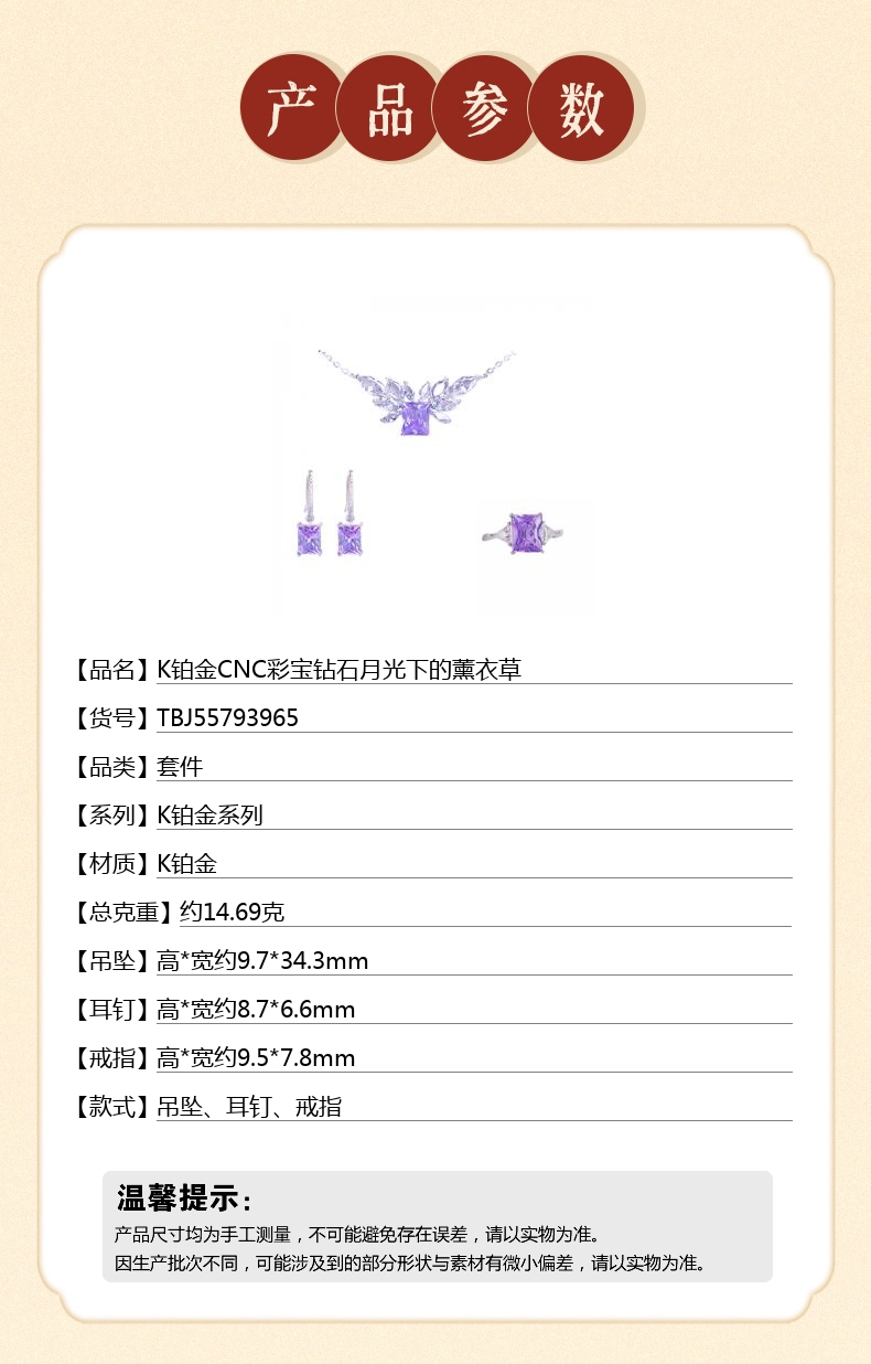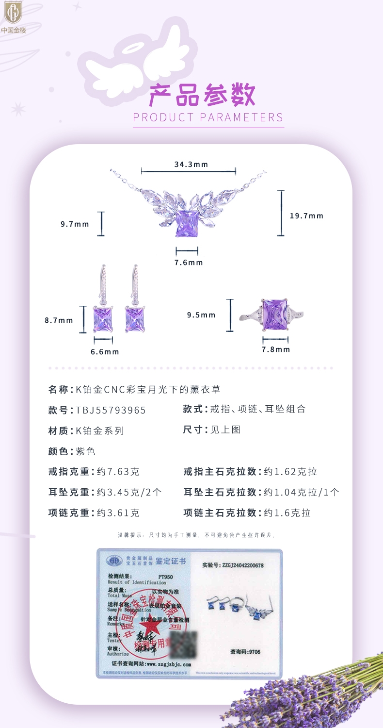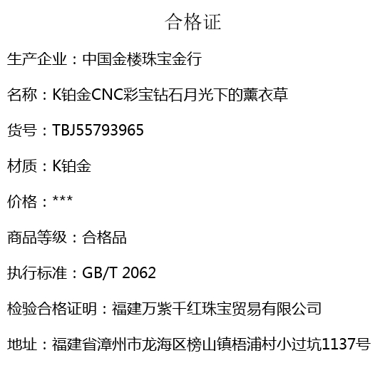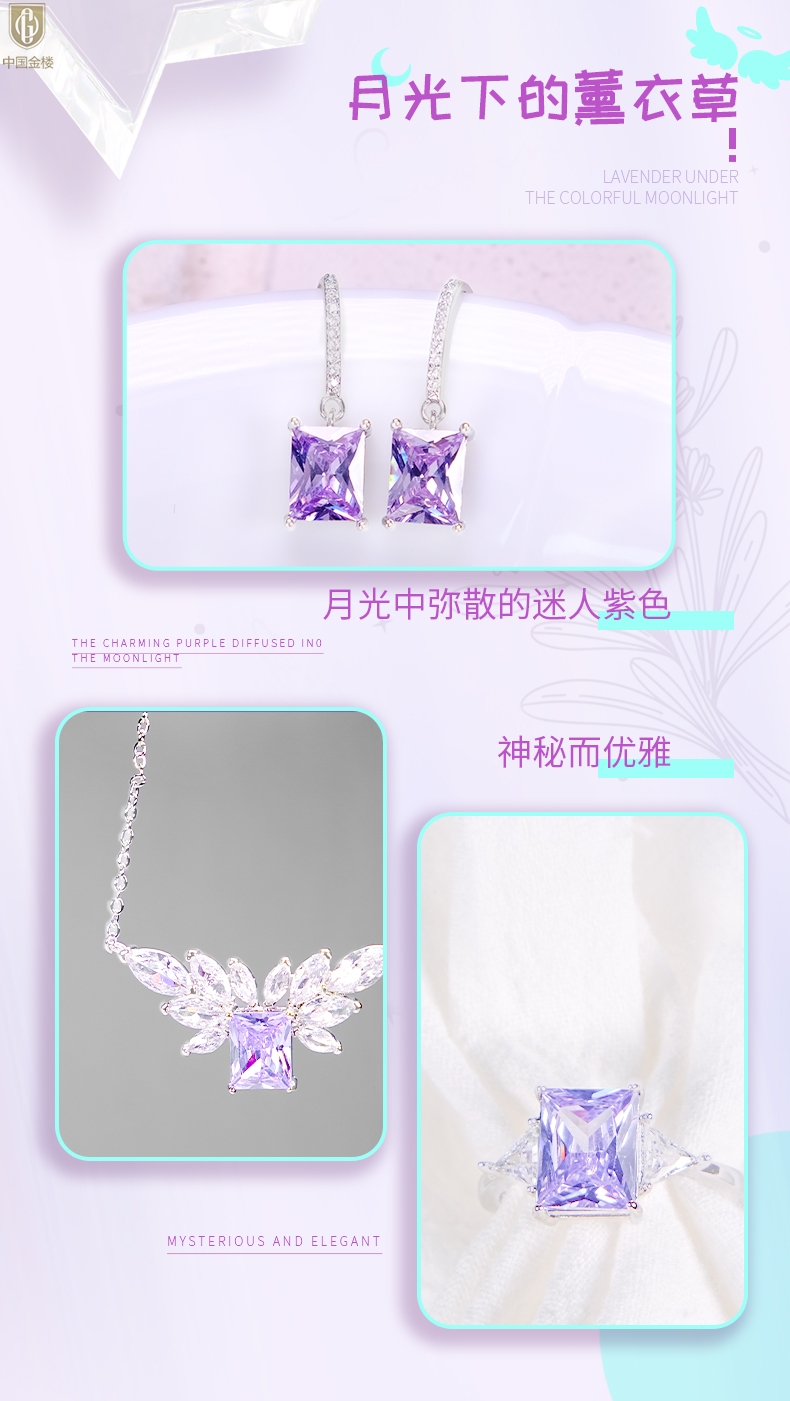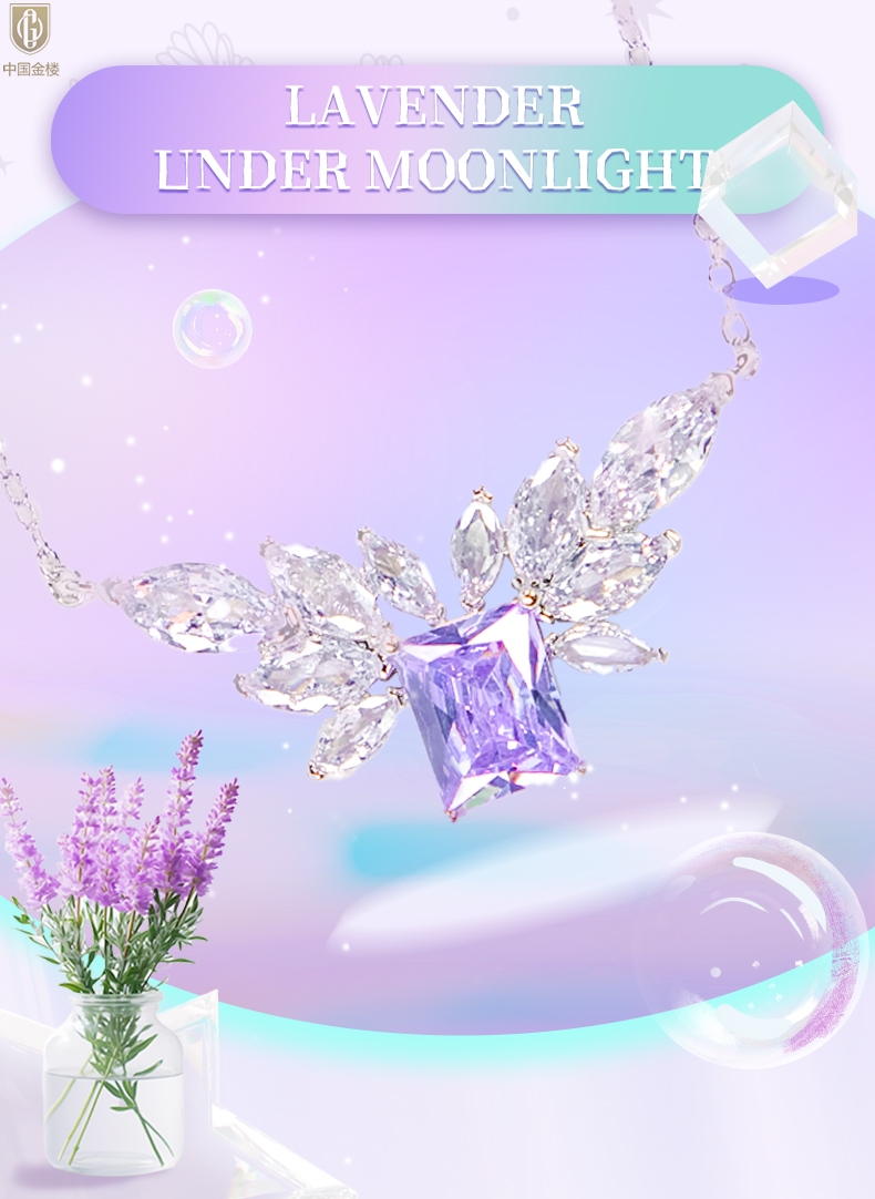 【品名】中国金楼K铂金CNC彩宝钻石月光下的薰衣草