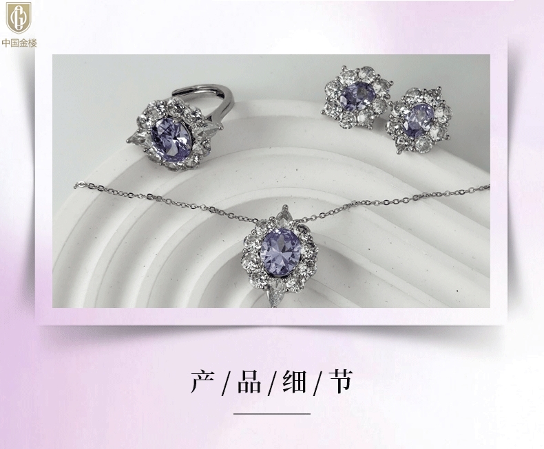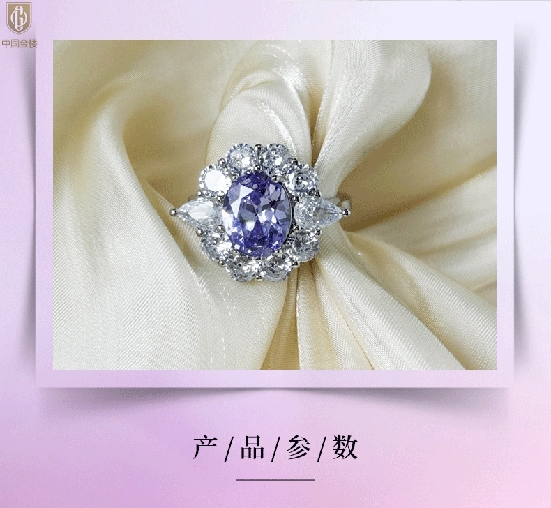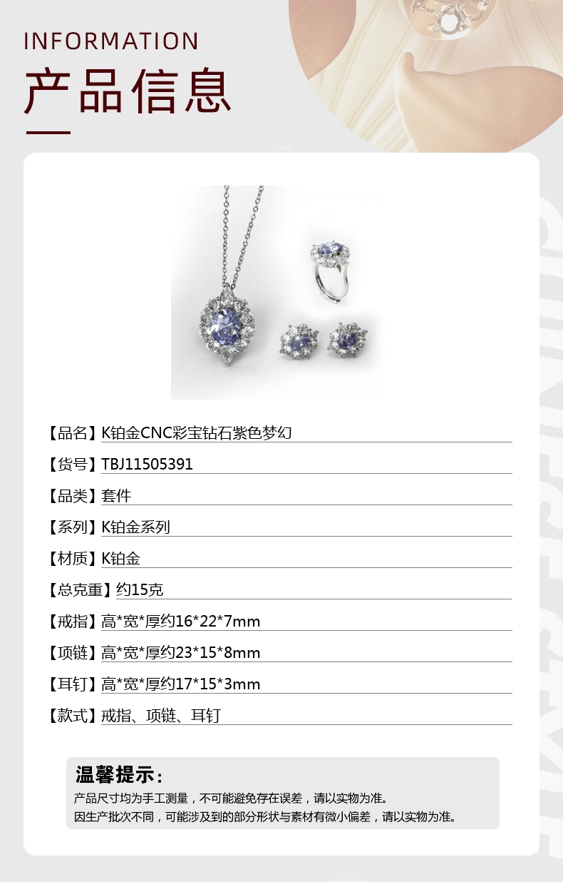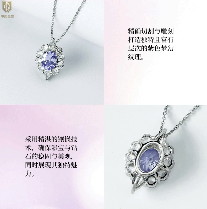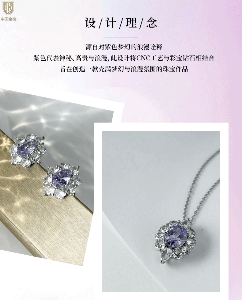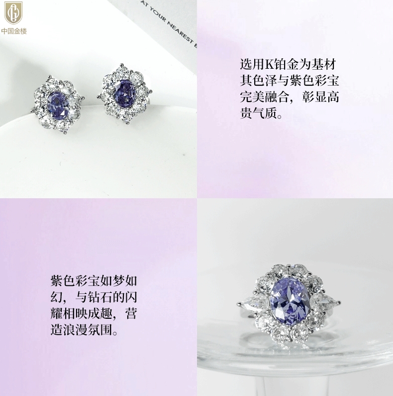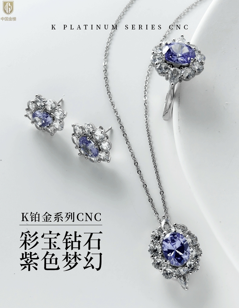 【品名】中国金楼K铂金CNC彩宝钻石紫色梦幻