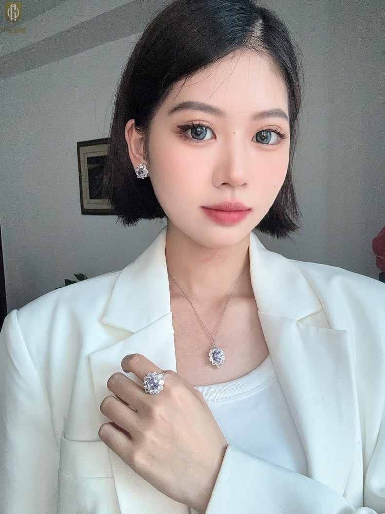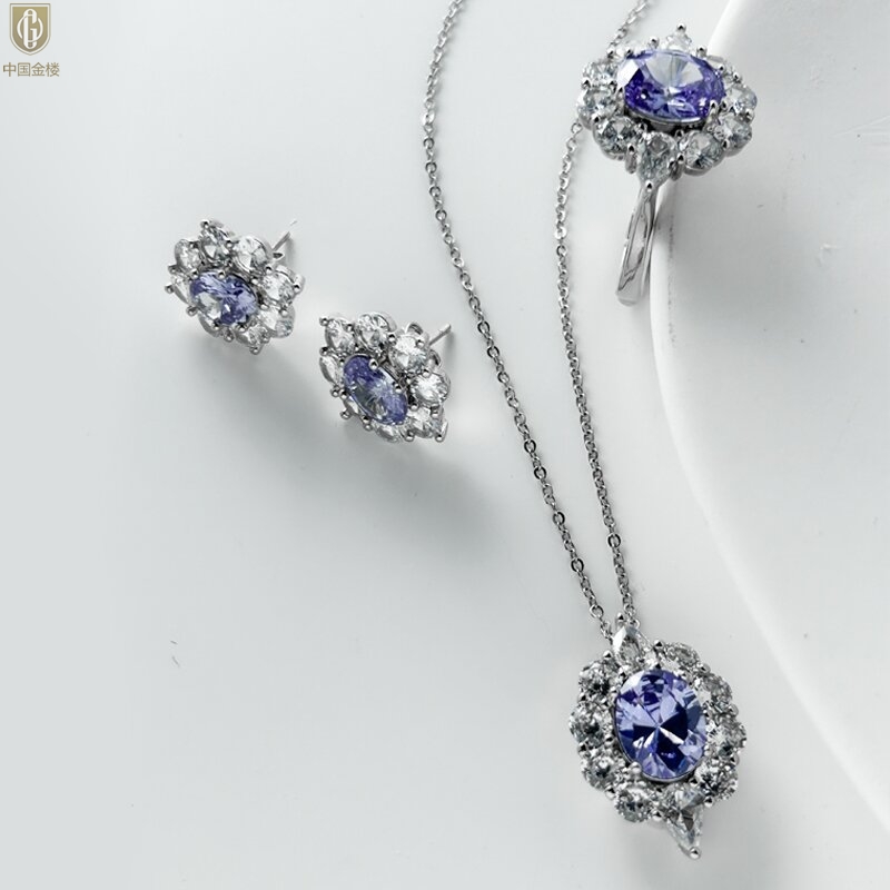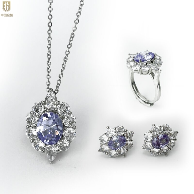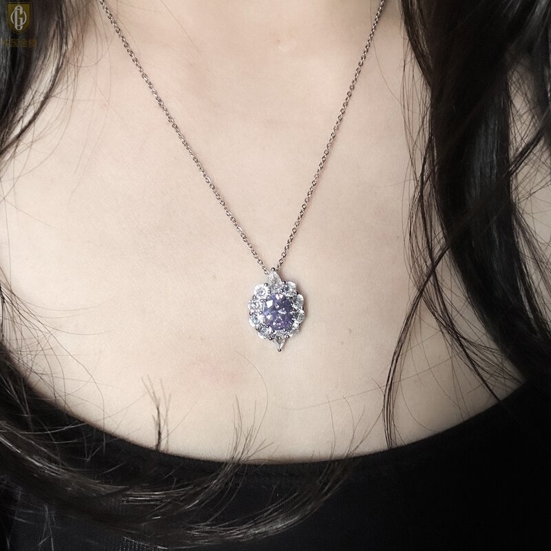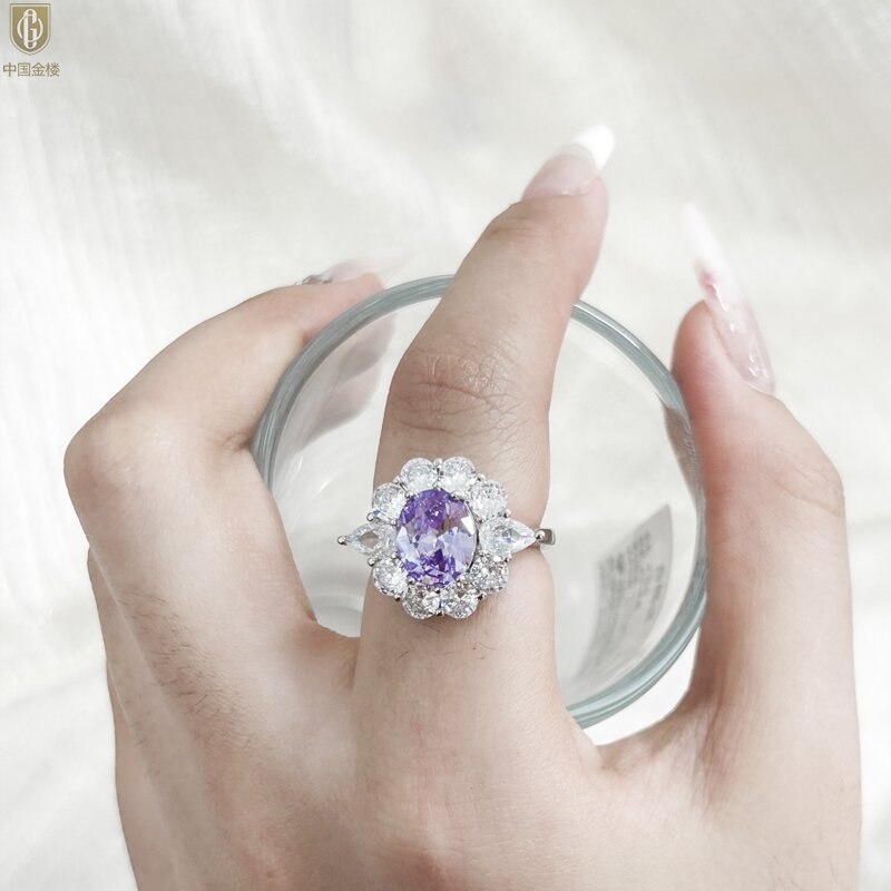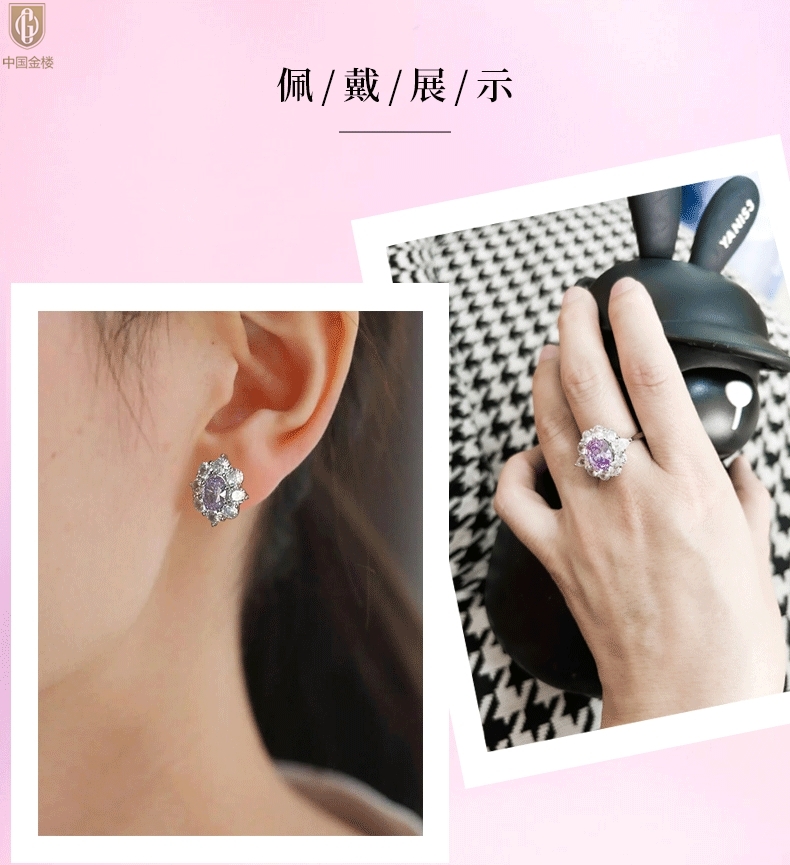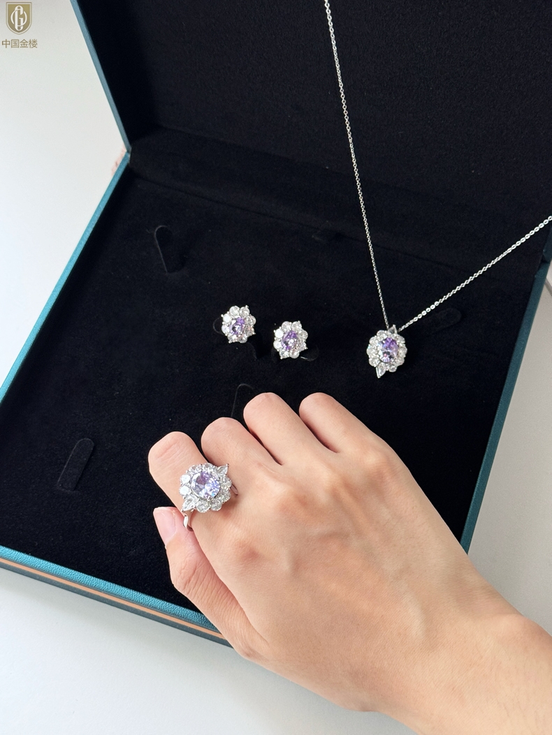 【品名】中国金楼K铂金CNC彩宝钻石紫色梦幻