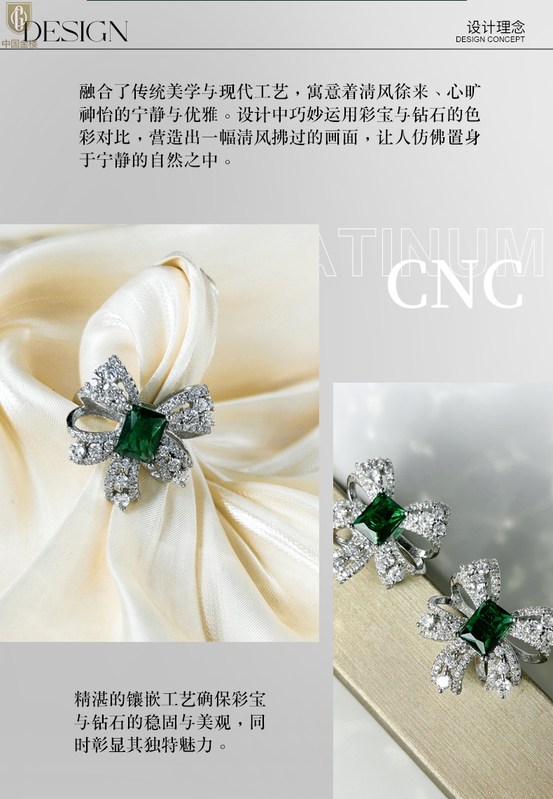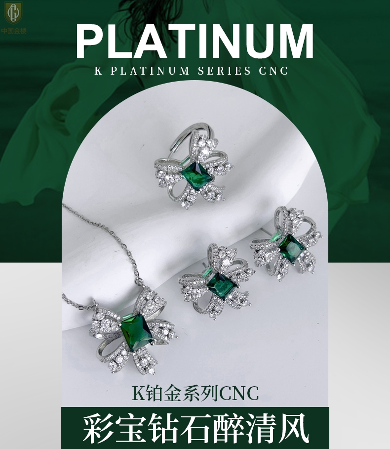 【品名】中国金楼K铂金CNC彩宝钻石醉清风