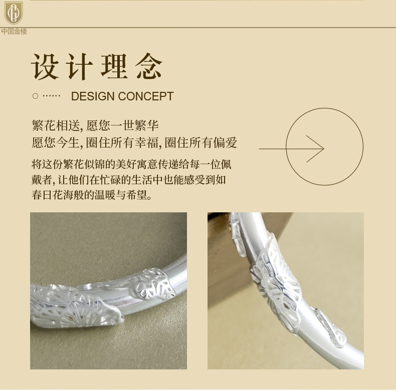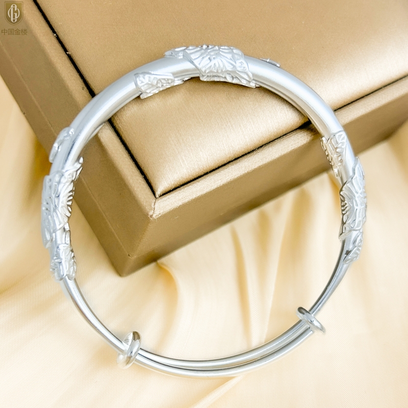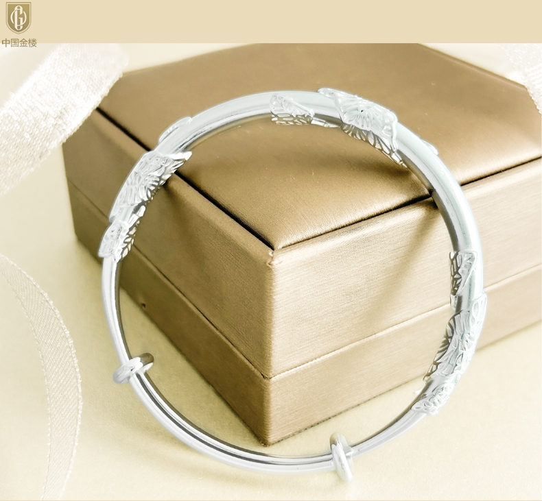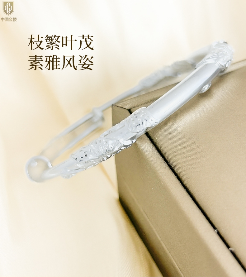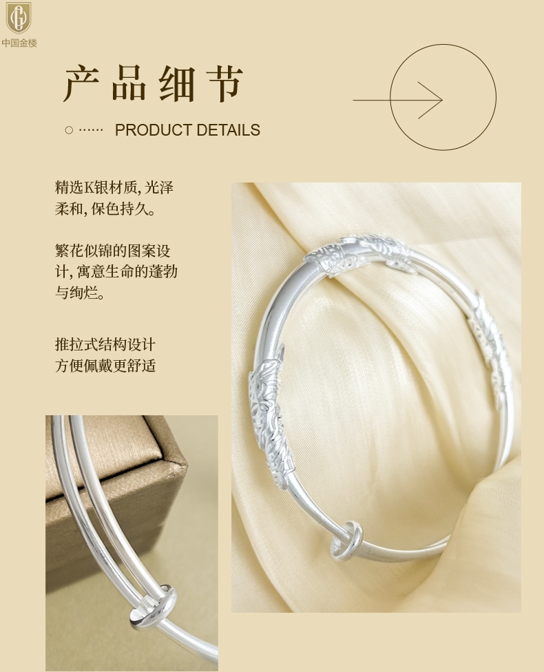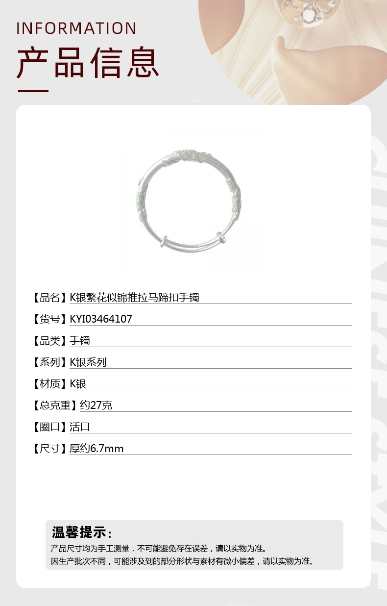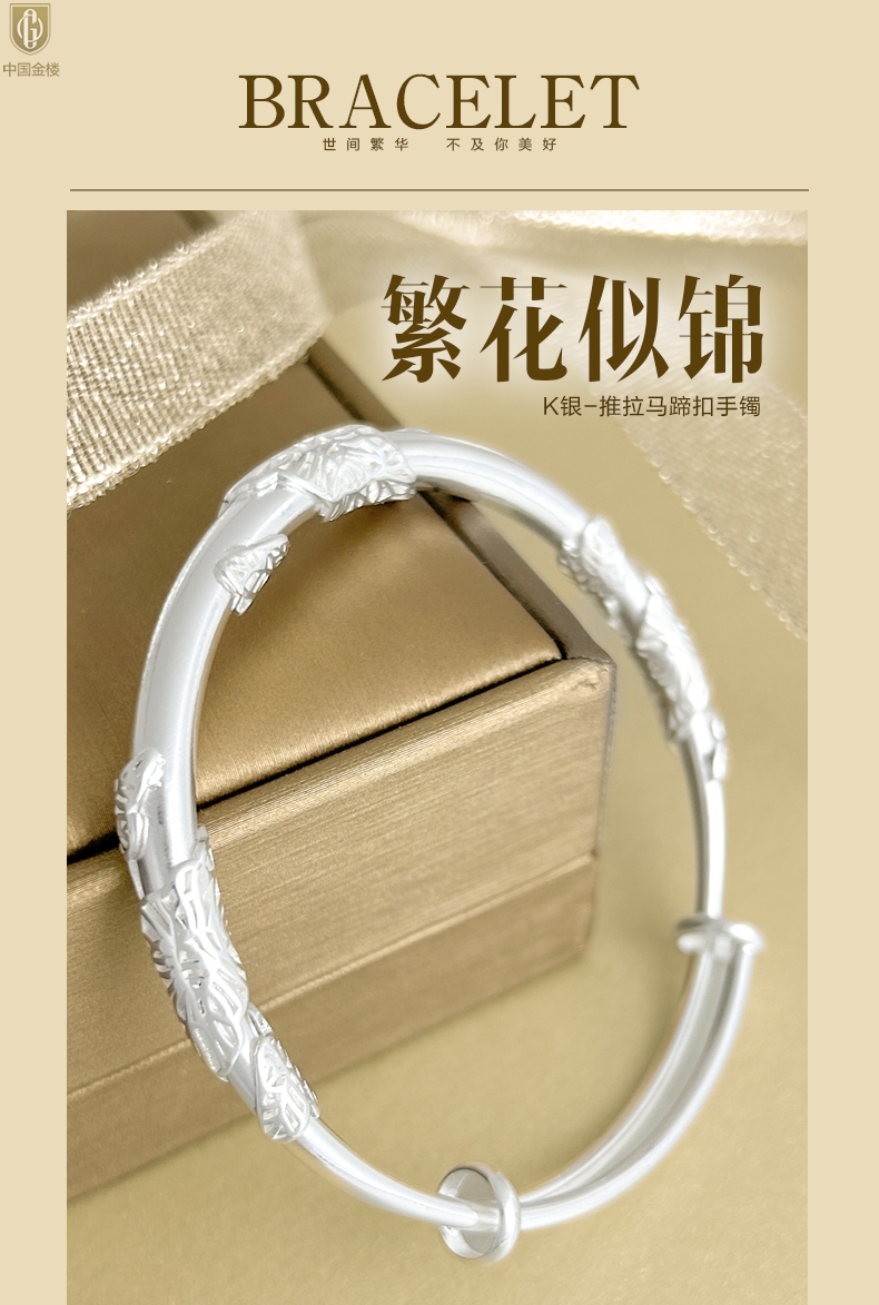 【品名】中国金楼K银繁花似锦推拉马蹄扣手镯