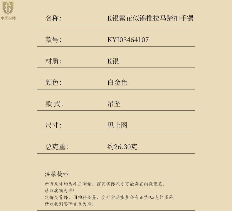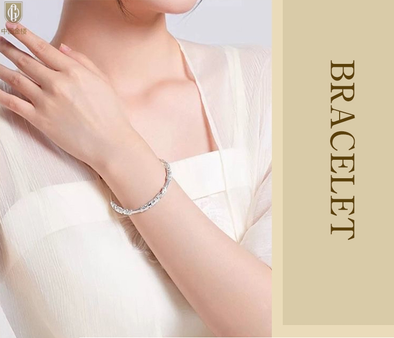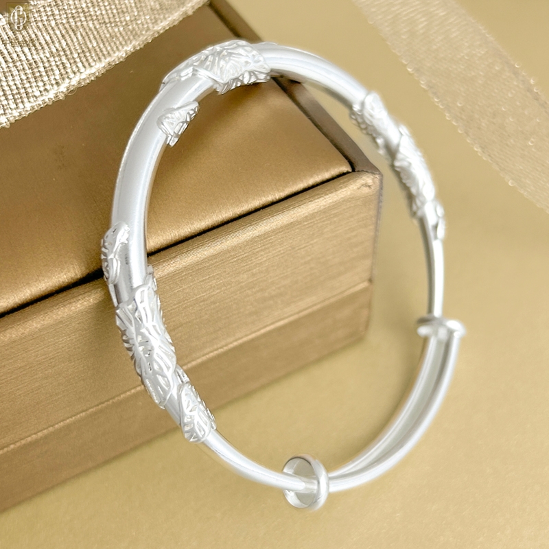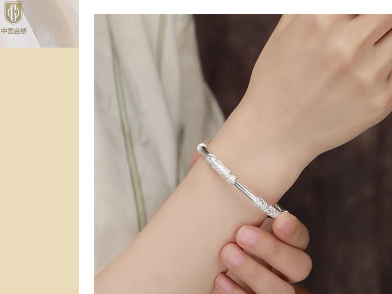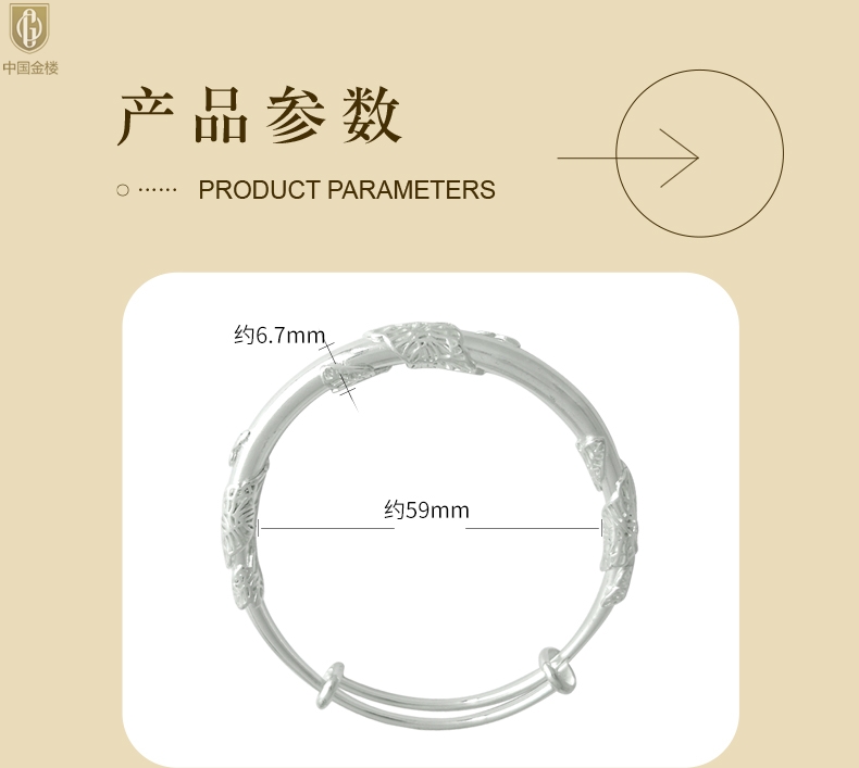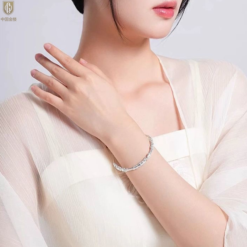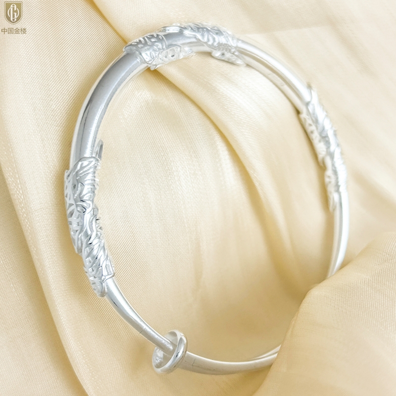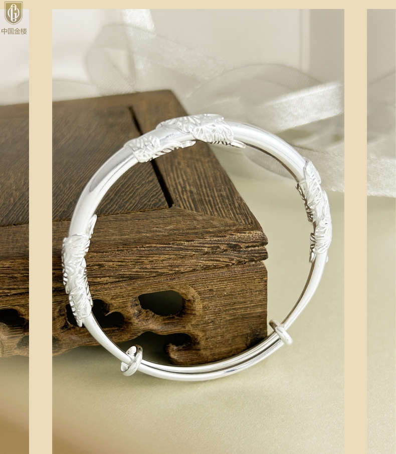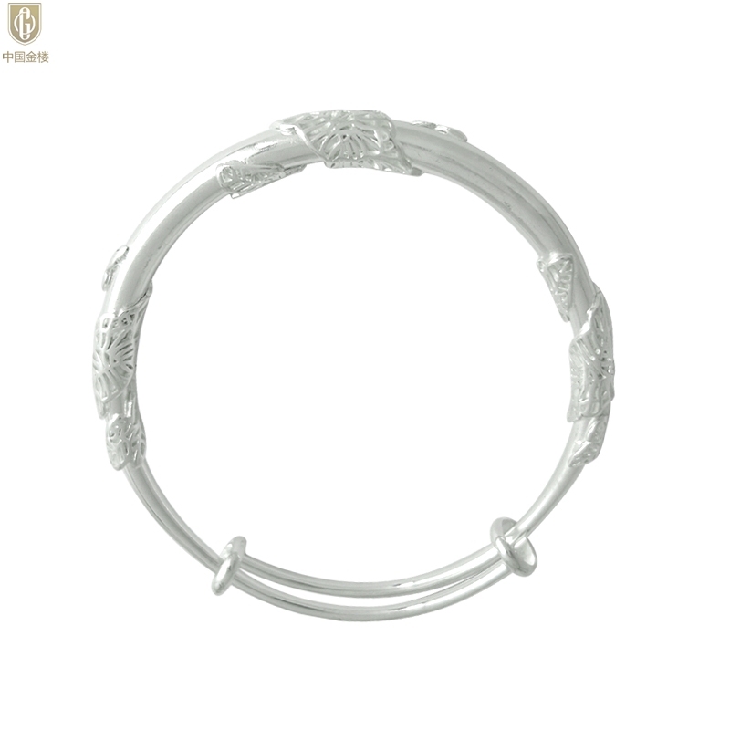 【品名】中国金楼K银繁花似锦推拉马蹄扣手镯