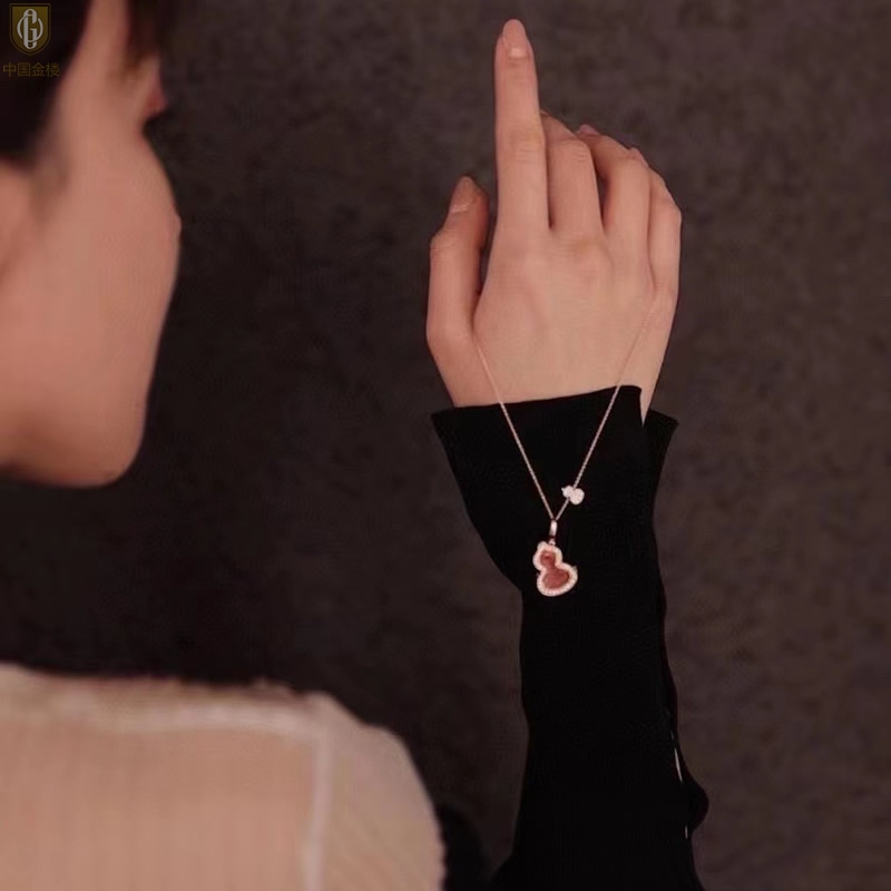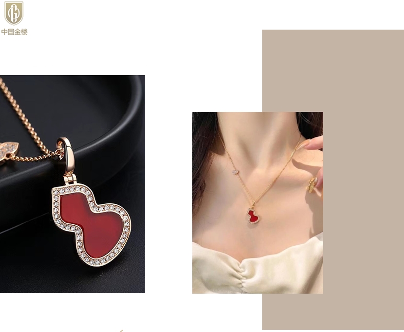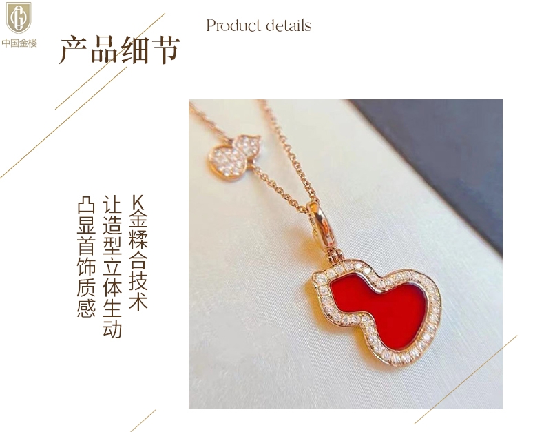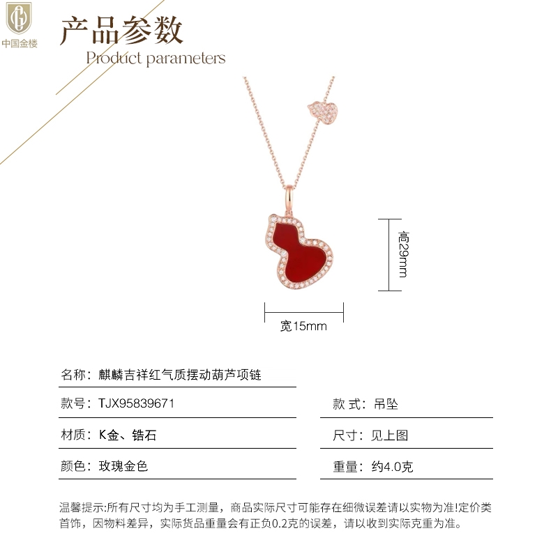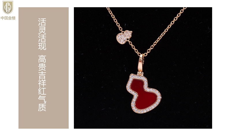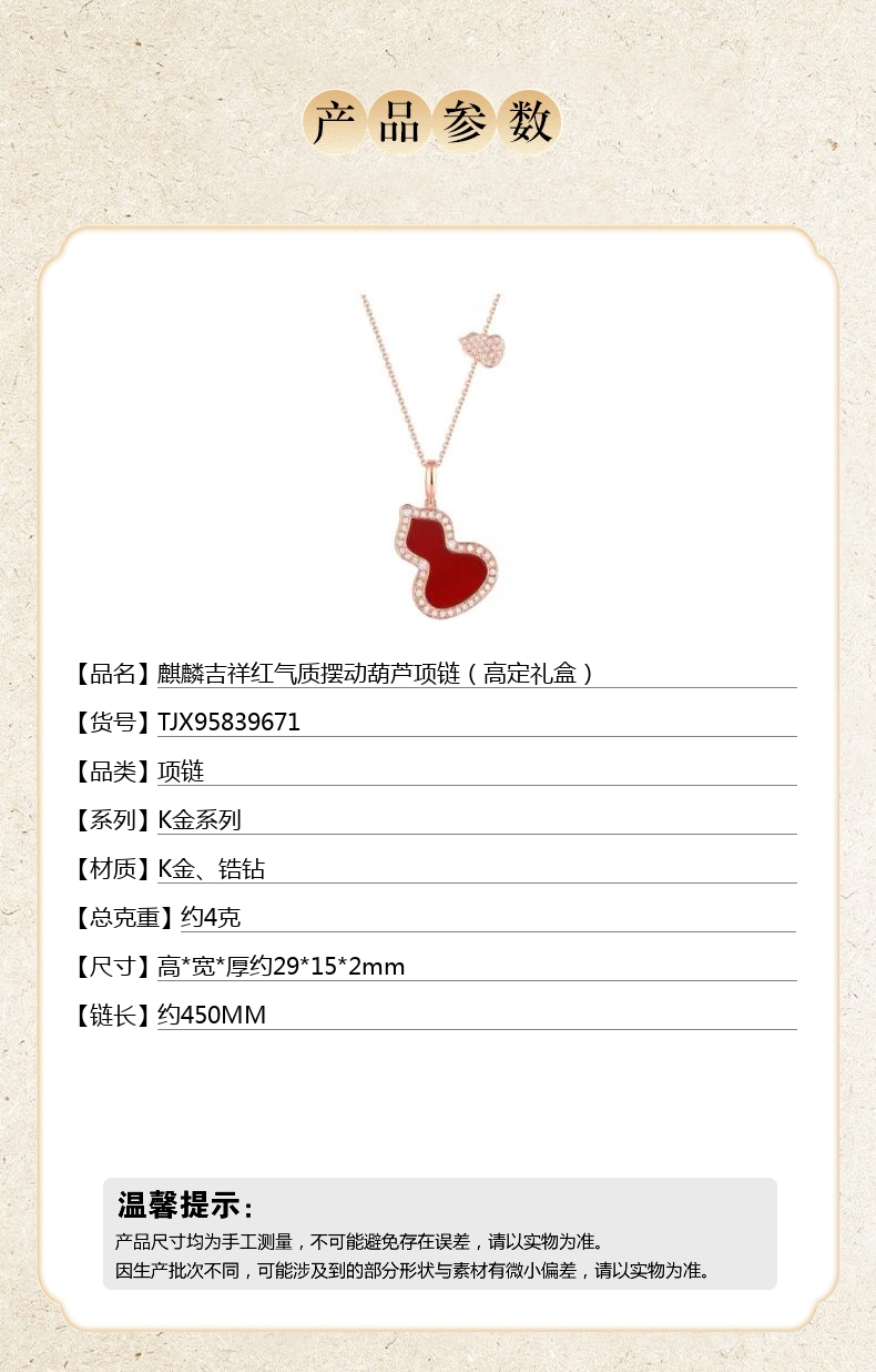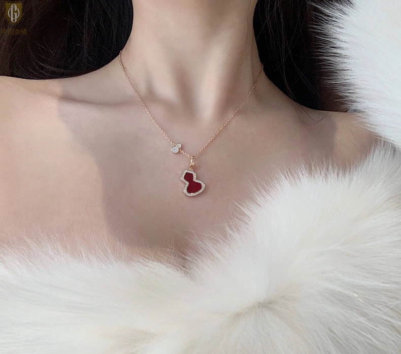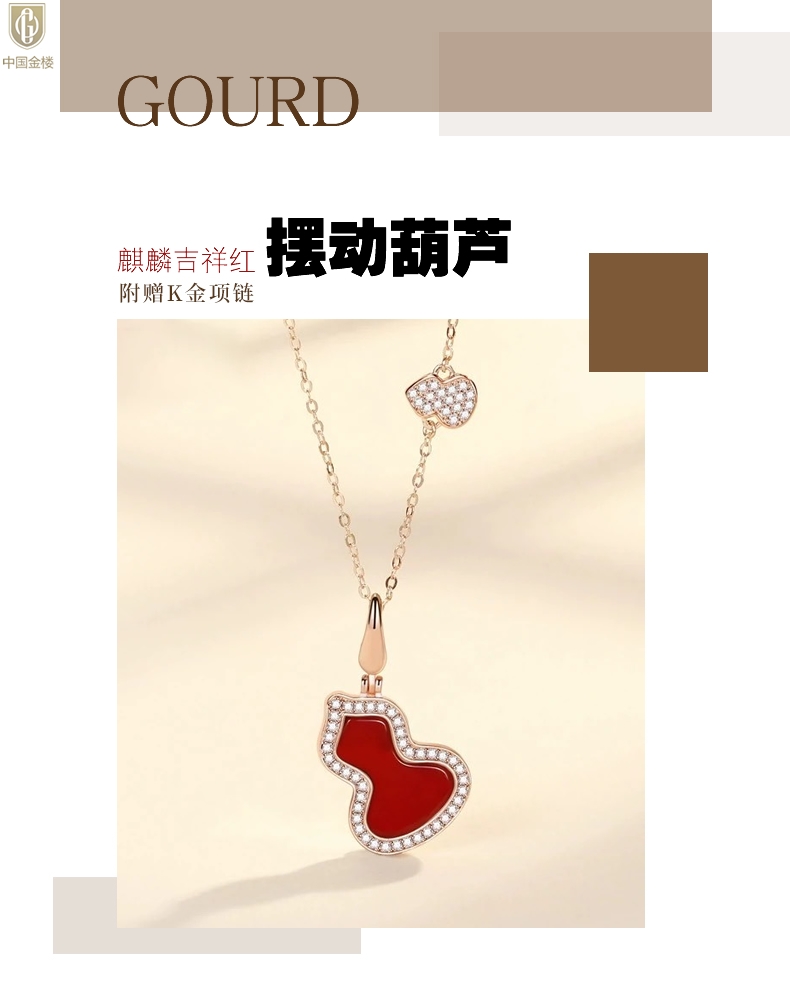【品名】中国金楼麒麟吉祥红气质摆动葫芦项链(高定礼盒)