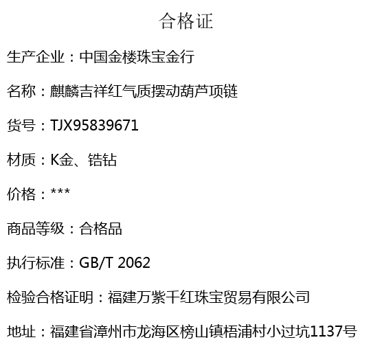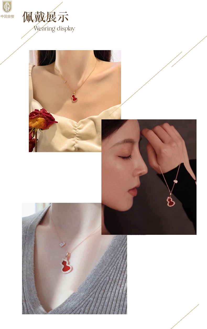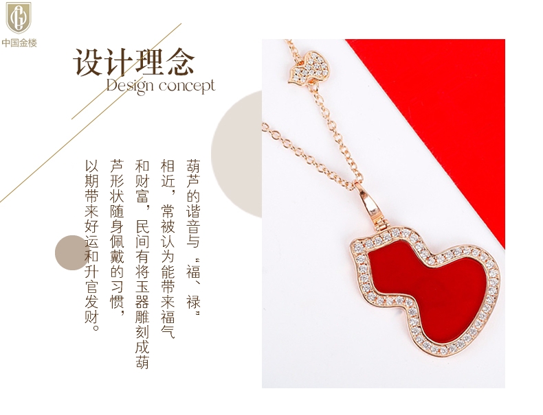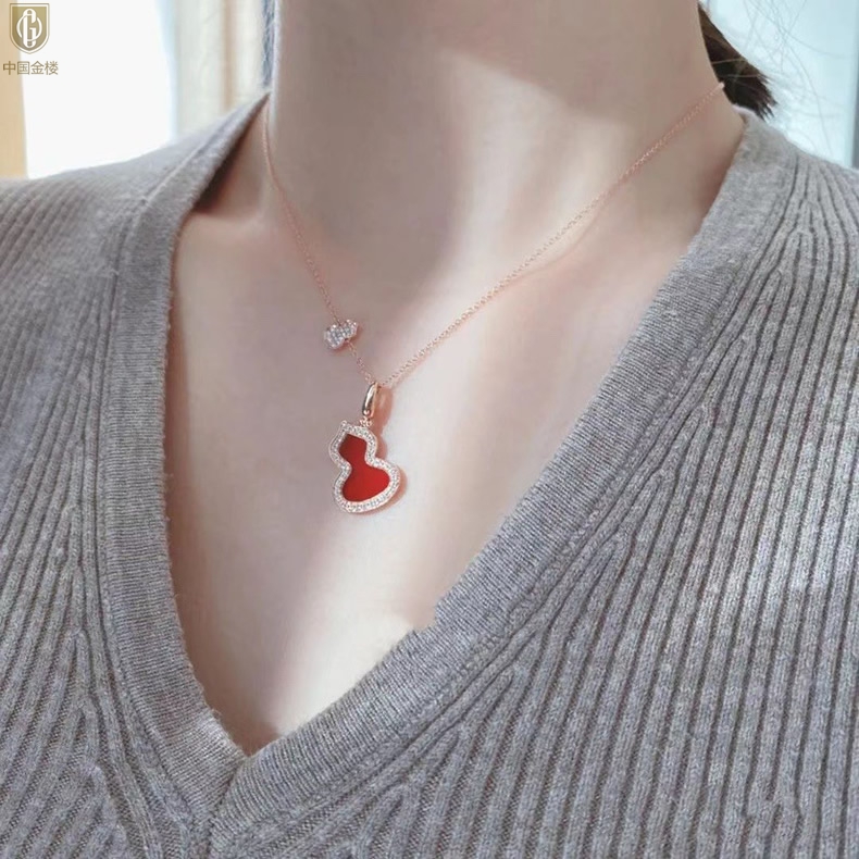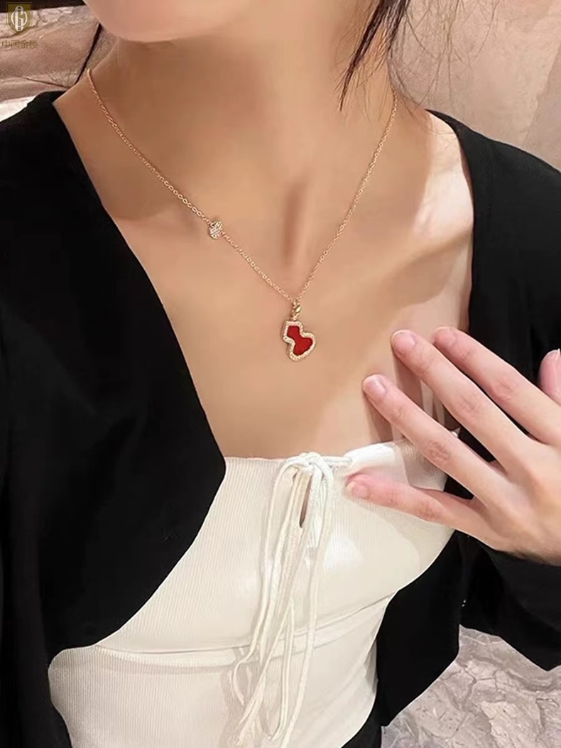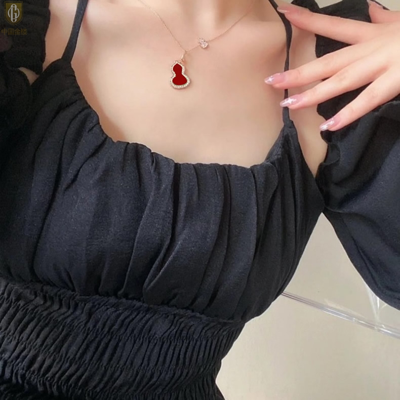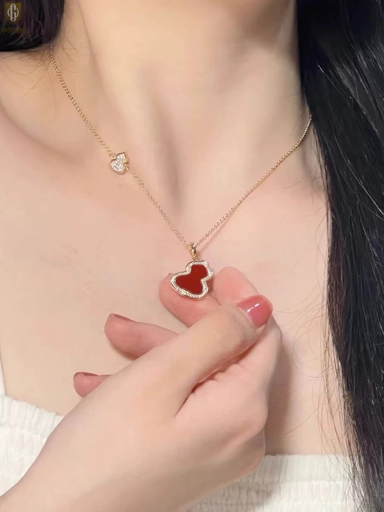 【品名】中国金楼麒麟吉祥红气质摆动葫芦项链(高定礼盒)