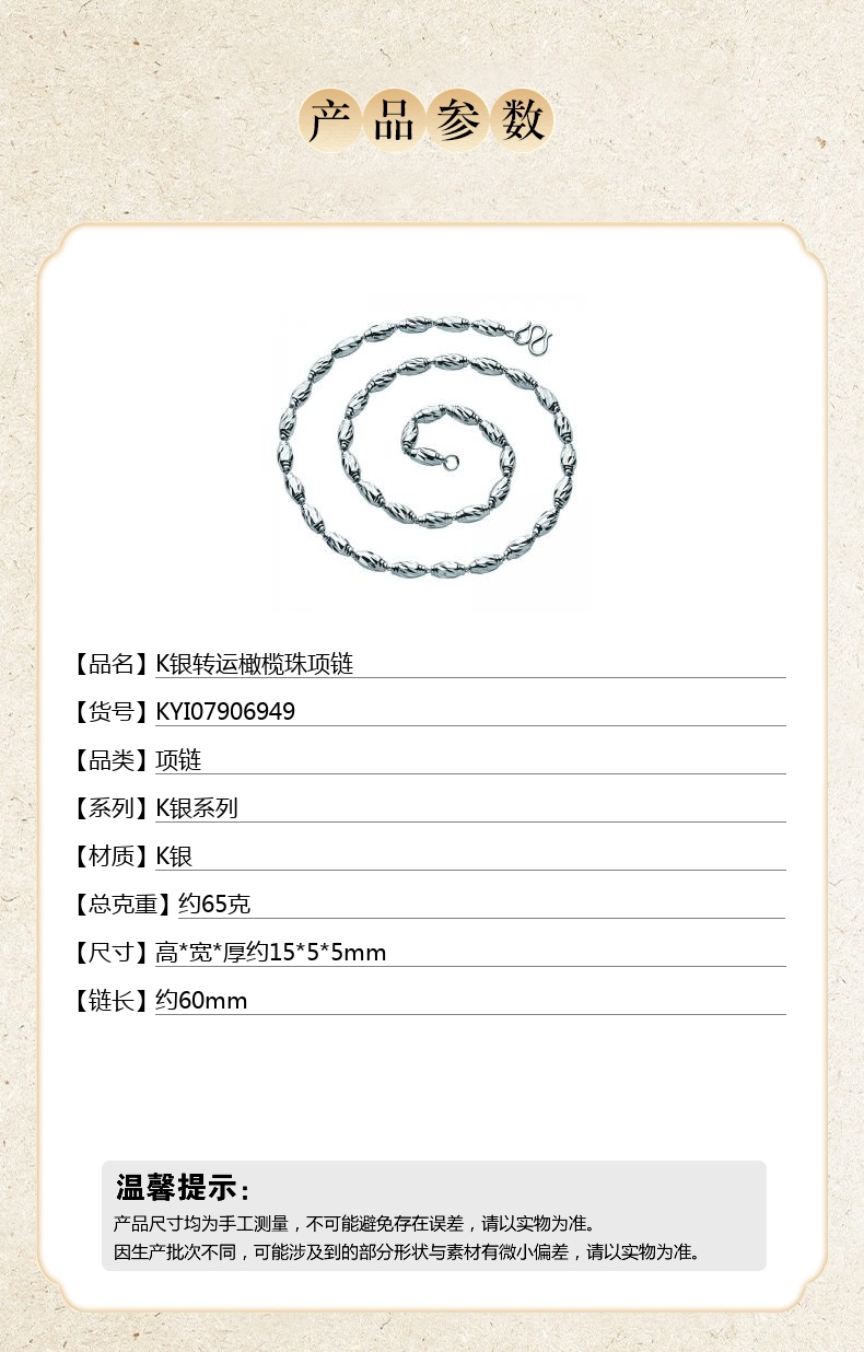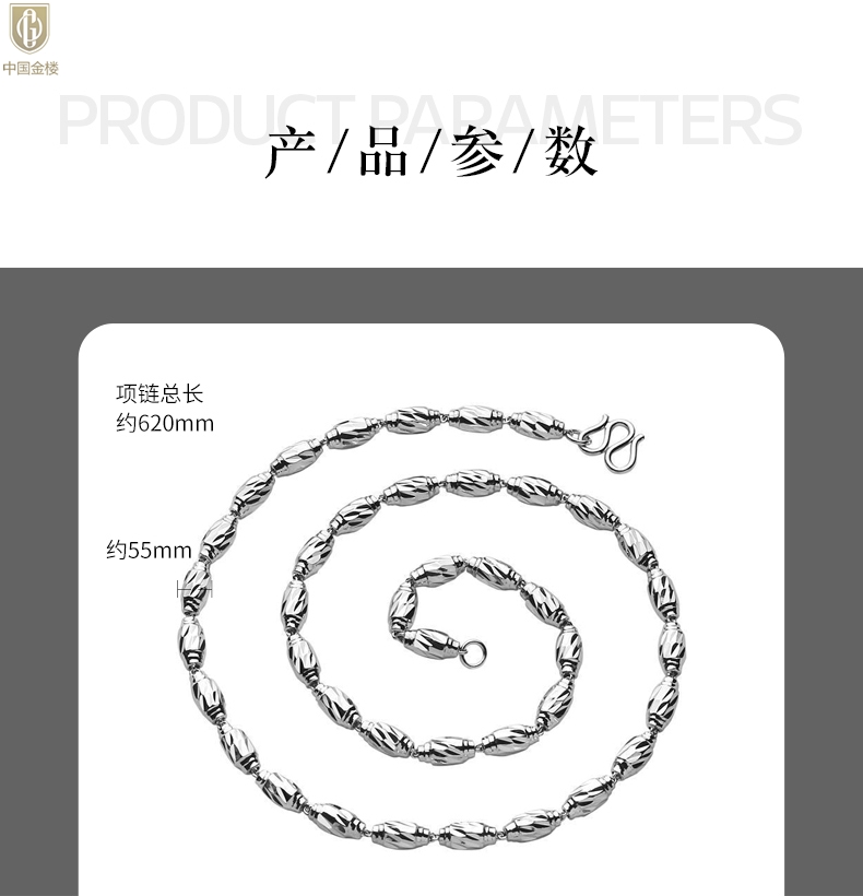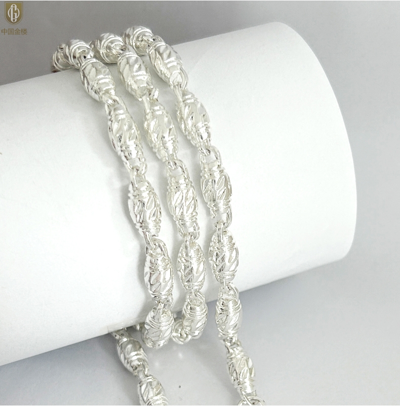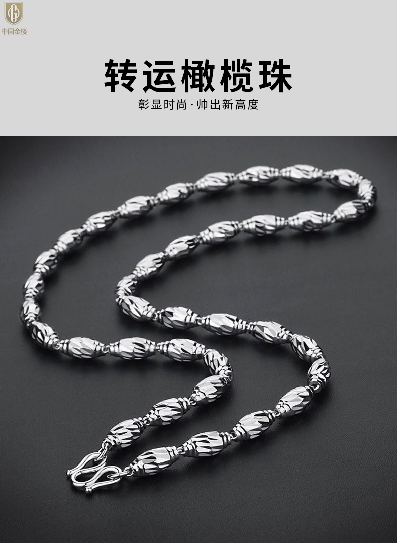 【品名】中国金楼K银转运橄榄珠项链
