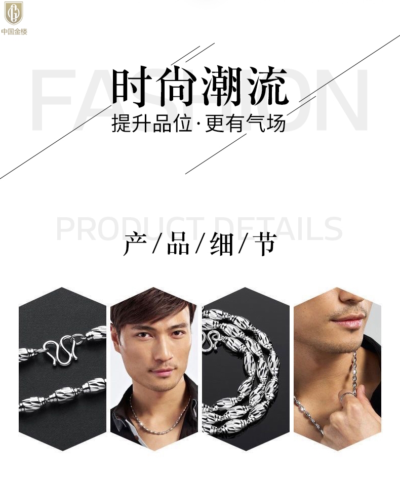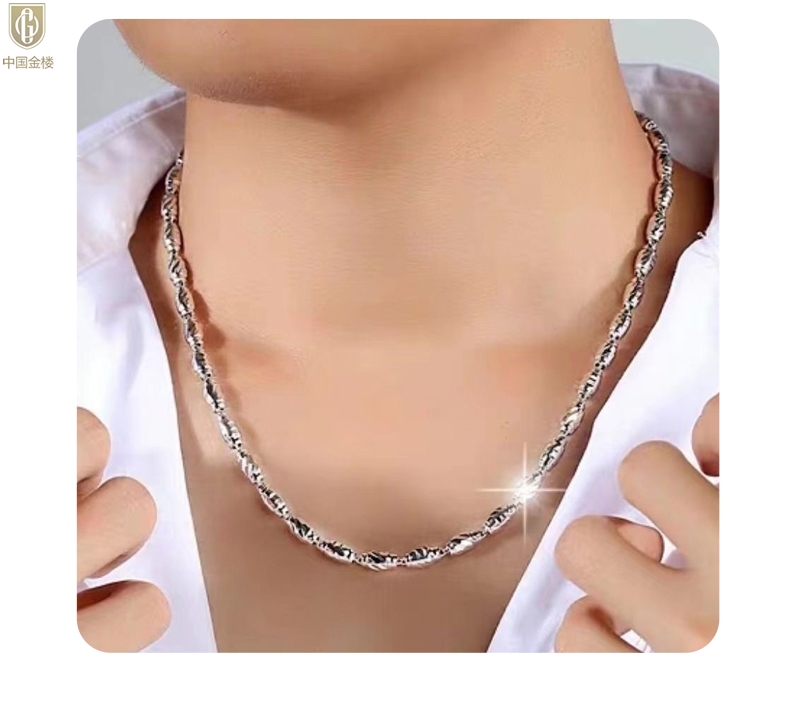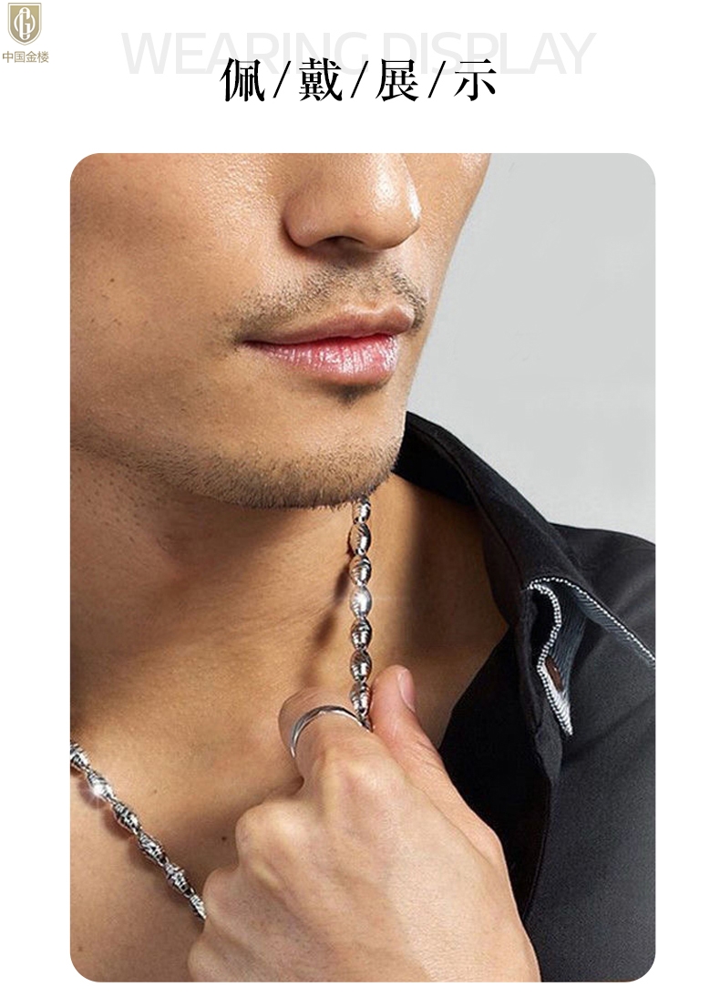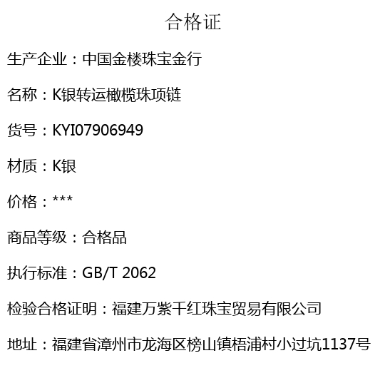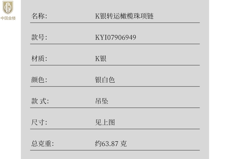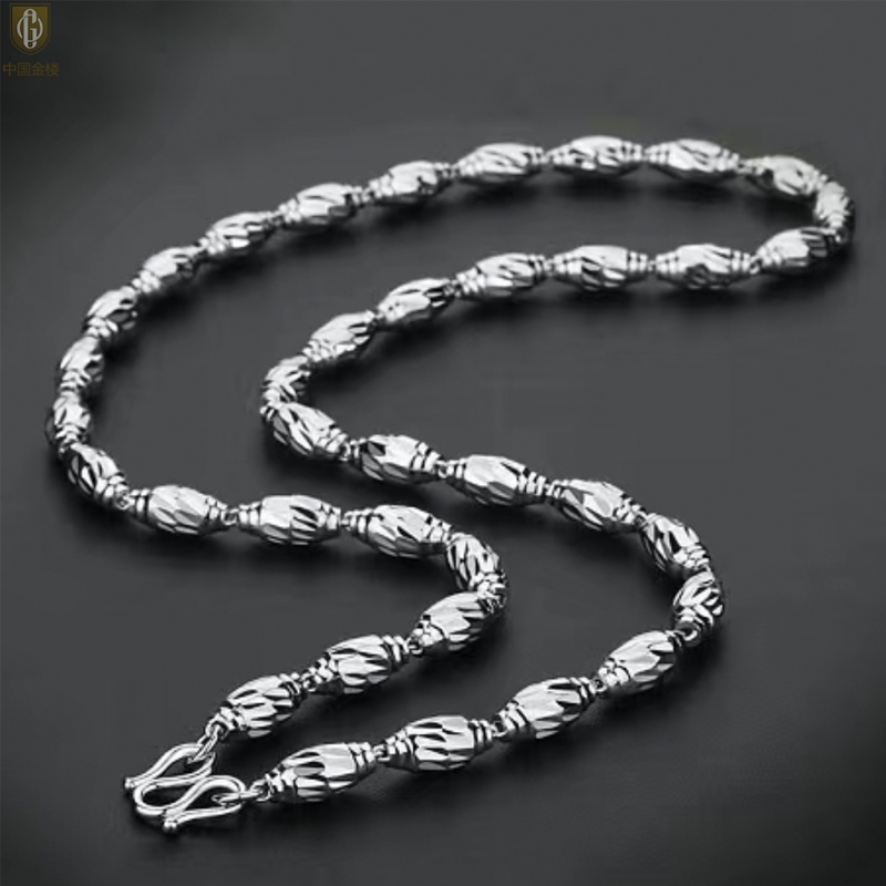 【品名】中国金楼K银转运橄榄珠项链